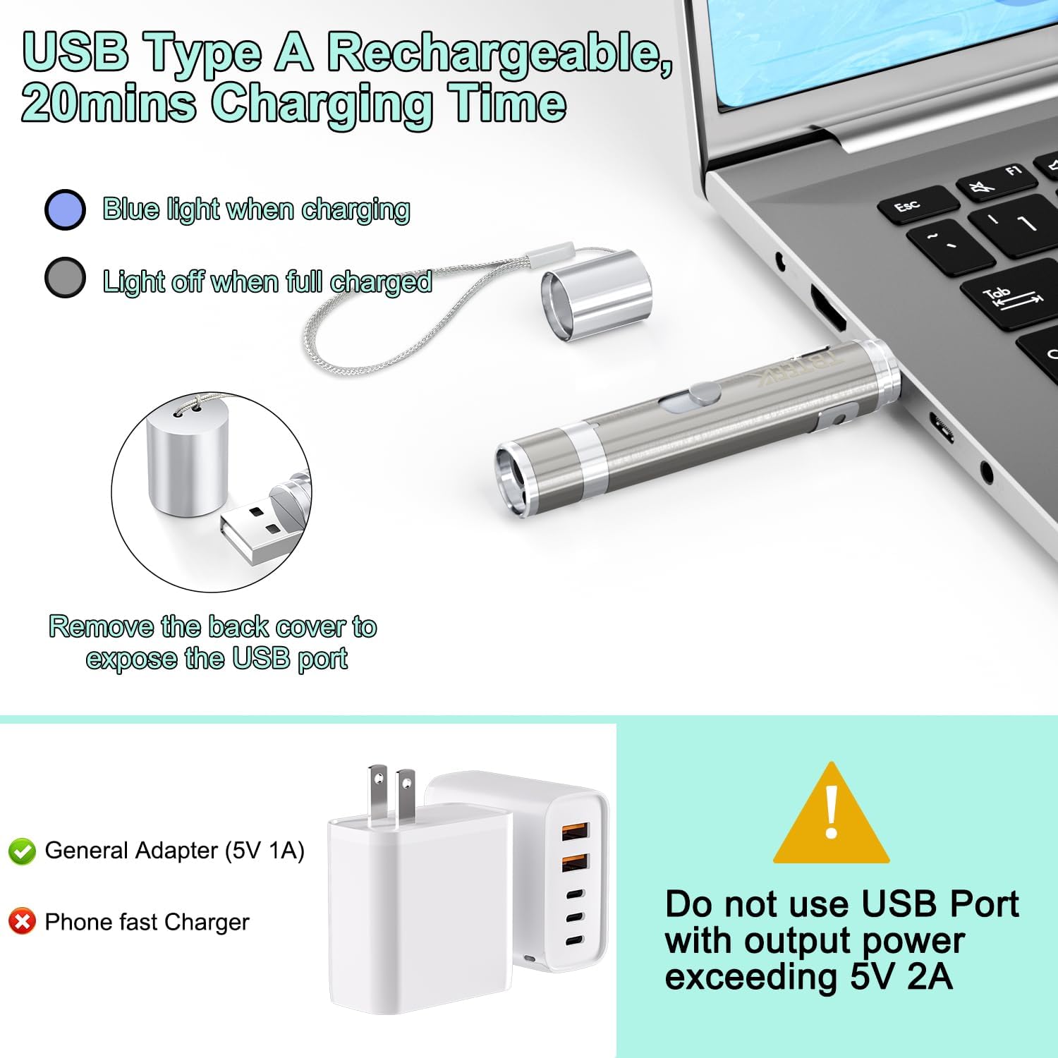 • USB Direct Charging: No dry batteries needed! Unplug the back cover and plug into USB port (adapter/computer/car) to charge, about 20mins fully charged