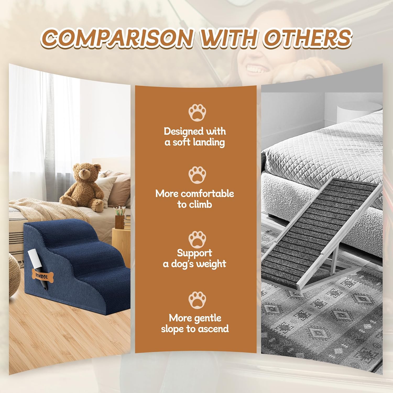 - 33D REBOUND HIGH-DENSITY FOAM: Our 33D foam delivers 63% faster rebound vs standard foam with enhanced weight capacity. Perfect for puppies, senior dogs, and pets recovering from surgery to access beds/couches safely. Dual-purpose as cat stairs for multi-pet households