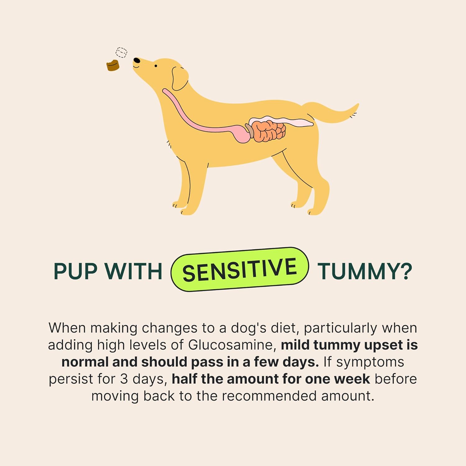 - Highly Digestible: Designed to be gentle on the stomach, our joint chews are suitable for pups with sensitive tummies - because the best joint support should also be easy (and tasty) to take.