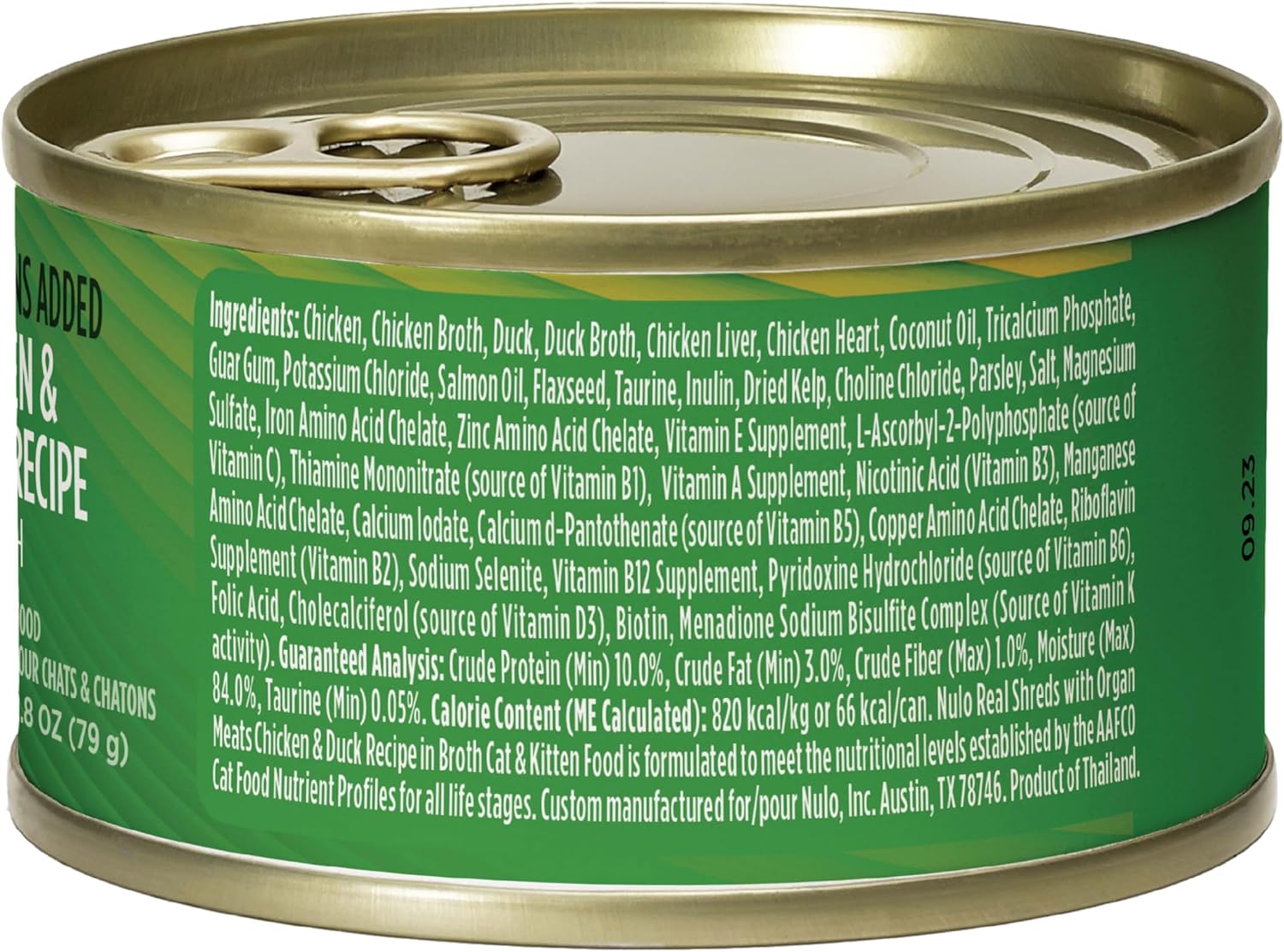 Nulo Real Shreds with Organ Meat Wet Canned Cat Food, Chicken & Duck, 2.8 Ounce, 12 Cans