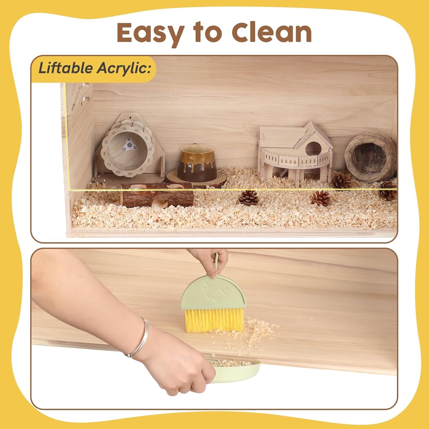 - Durable & Chewproof Material --- Constructed with high-quality, chewproof wood, this hamster cage is designed to withstand the relentless gnawing of small pets. Its sturdy construction not only enhances durability but also ensures a safe habitat, giving pet owners peace of mind that their furry friends are secure and protected.