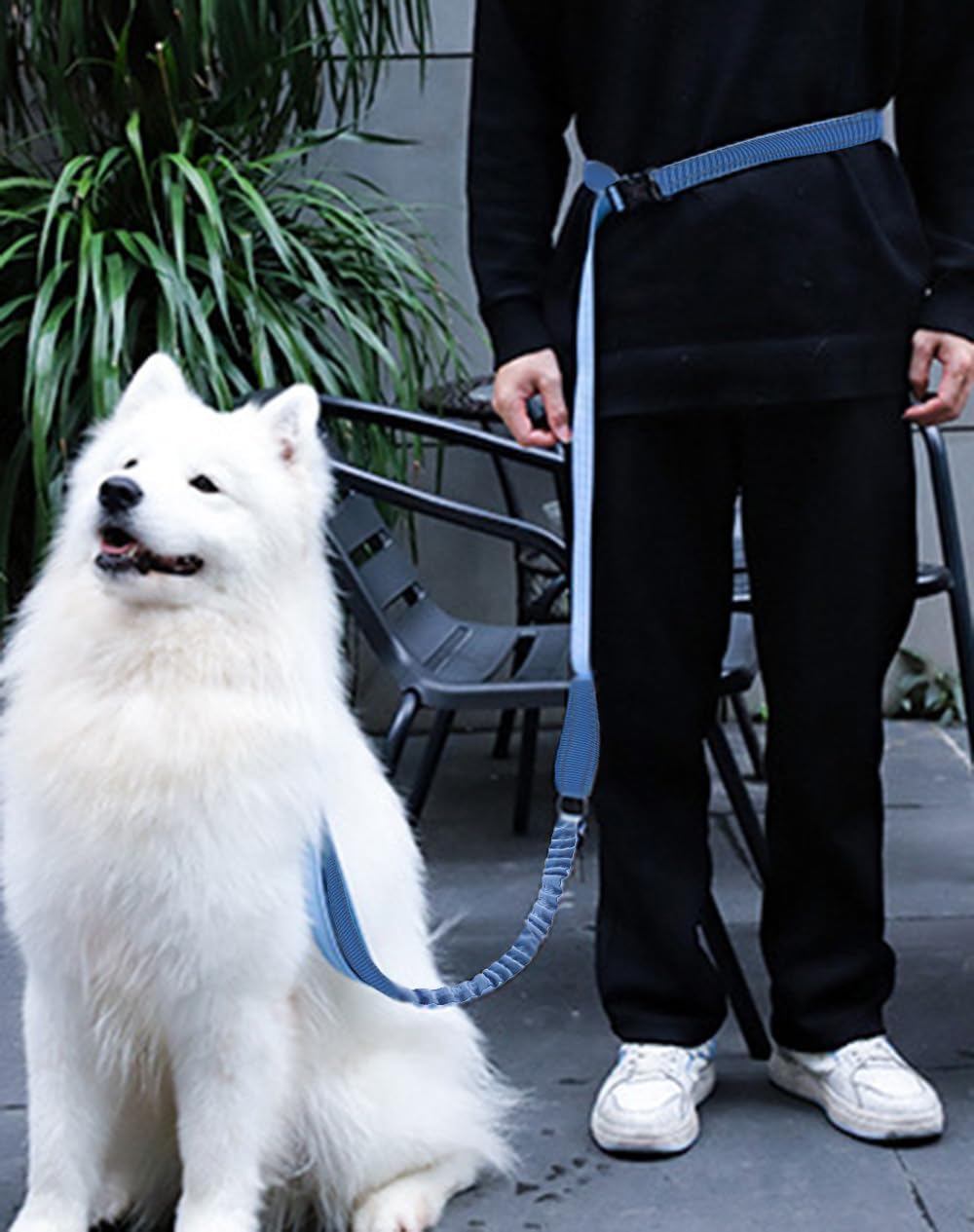 - Hands Free Dog Leash: When you walk your dog, you can attach the leash to your belt or your shoulder and you have your hands completely free to do your own thing. You can freely enjoy your phone, drinking or reading. This leash is adjustable and you can adjust it with buckle. Besides, the waist leash for dog walking is thick padded to reduce pressure on the body