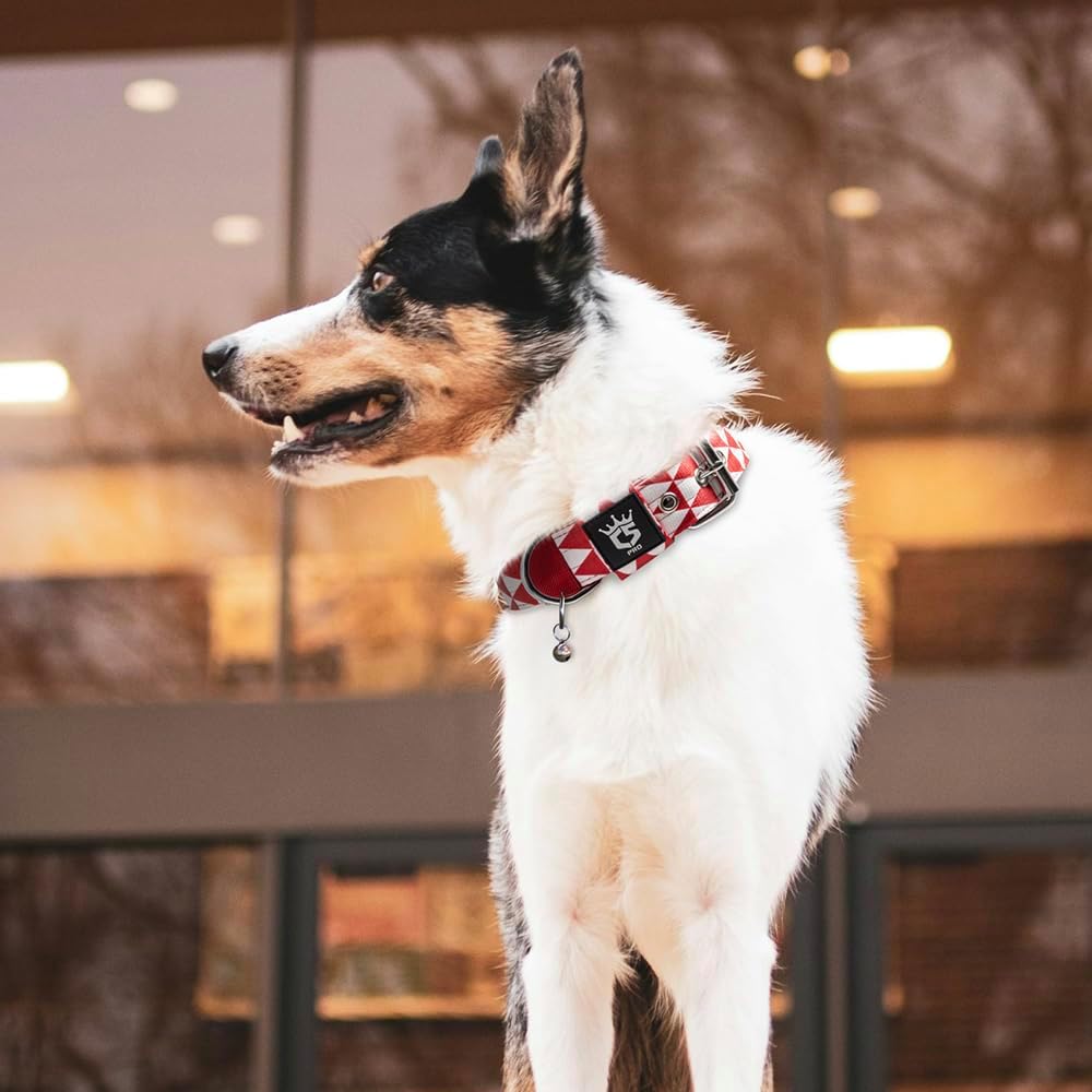 - Metal Collar for Dogs: The dog collars for small dogs with 4 adjustable points, easy to adjust the comfortable fit and attach to dog leash or dog collar. Please follow the size chart to measure your dog carefully before purchasing to ensure the halloween collar for dogs or christmas collar for dogs are fit well to your dog. For dog neck (L: 18.9β-21.7β, M: 15.8β-18.9β, S: 12.6β-15.8β)