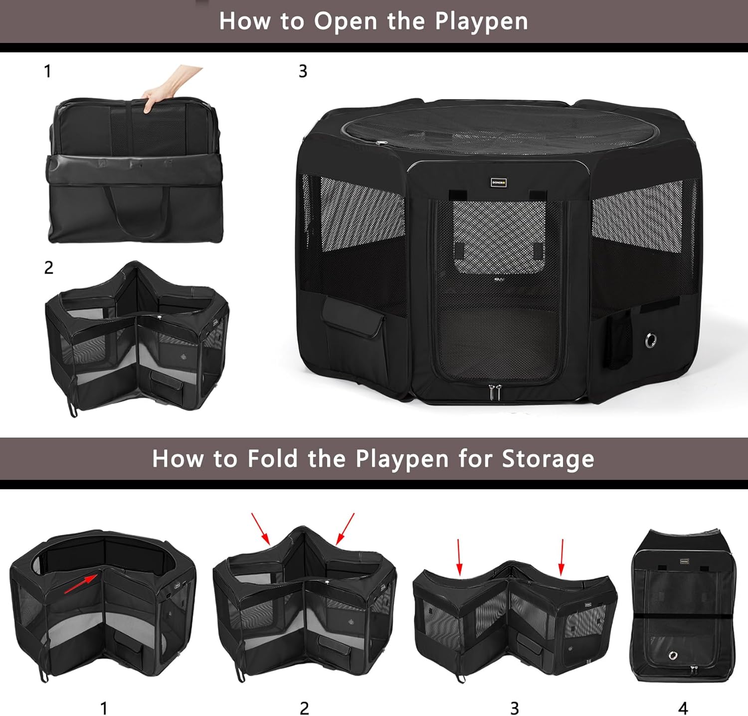DONORO Dog Playpen Portable Pet Play Pens for Small Dog/Cat/Rabbit/Chicks, Cat Playpen Indoor/Outdoor with Carring Case, Removable Zipper Top and Bottom (Black, Medium (36"x36"x20"), 8)