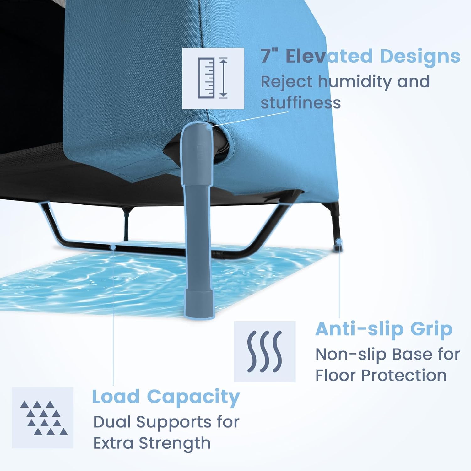 - Versatile 2-in-1 Dog House: Assembly is a breeze with no tools or screws needed β your pet will be lounging in luxury within minutes. When needed, effortlessly transform this weatherproof structure into a 2X1 Textilene elevated dog bed for easy maintenance and unparalleled comfort.