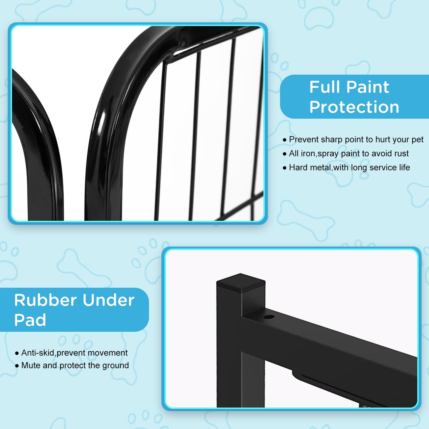- PET-SAFE DESIGN WITH FLOOR PROTECTION: Rubber pads prevent the playpen from sliding and protect the floors from scratches, making it great as a indoor playpen. Smooth edges add extra safety