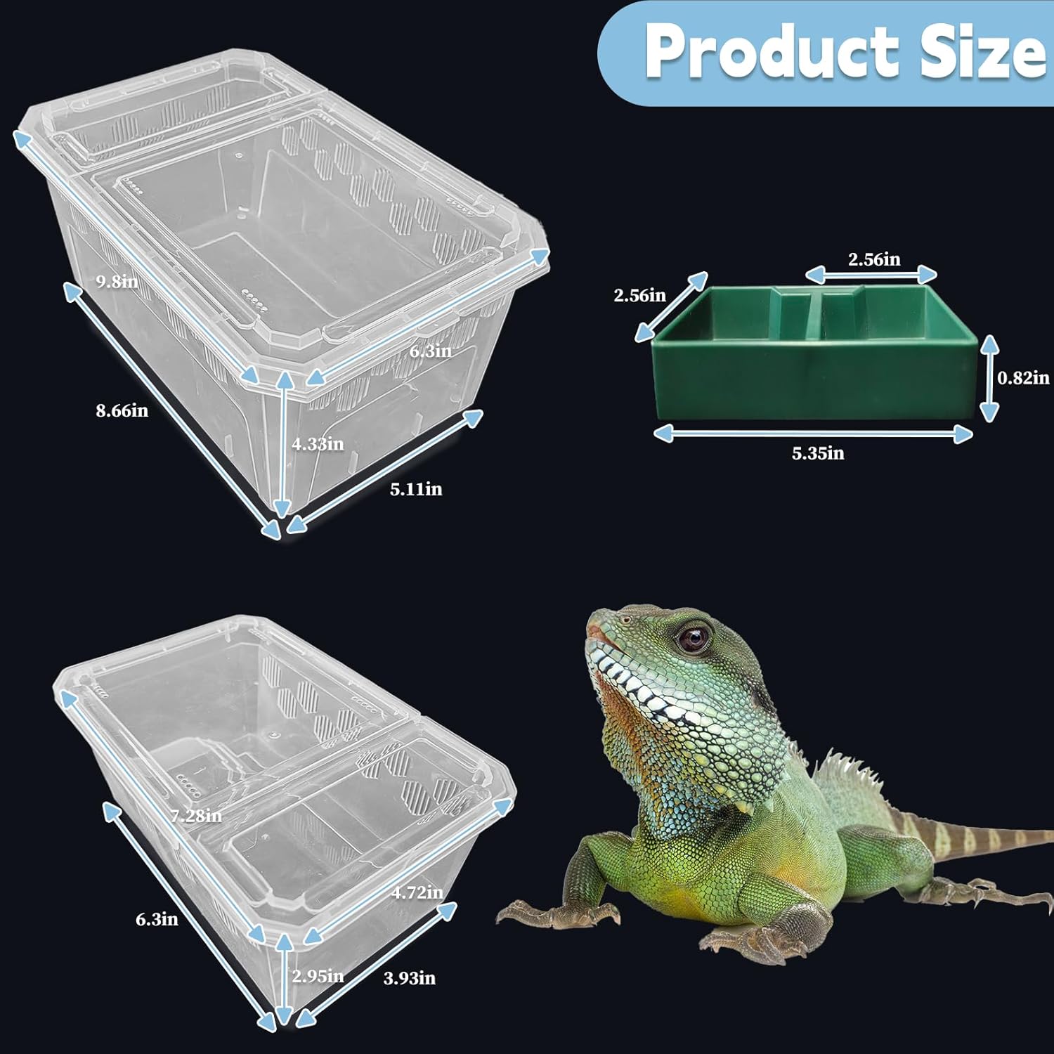 - PERFECT SIZE: Portable reptile feeder size (large: 9.8*6.3*4.33 inches, small: 7.28*4.72*2.95 inches), perfect for small reptiles including snakes, frogs, tarantulas, turtles, lizards, geckos, hermit crabs, crickets, centipedes and more