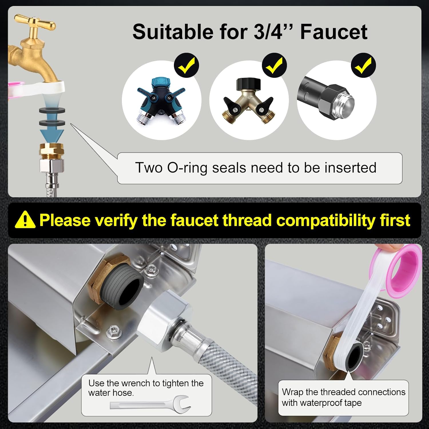 - [Easy to Install]: You just confirm if your faucet has a 3/4in GHT standard thread. The included accessories have everything needed for a hassle-free setup. With mounting screws, it can be wall-mounted or placed on the ground, making it perfect for yards or farms Kind tips: Users should verify thread compatibility before purchase for a smooth connection