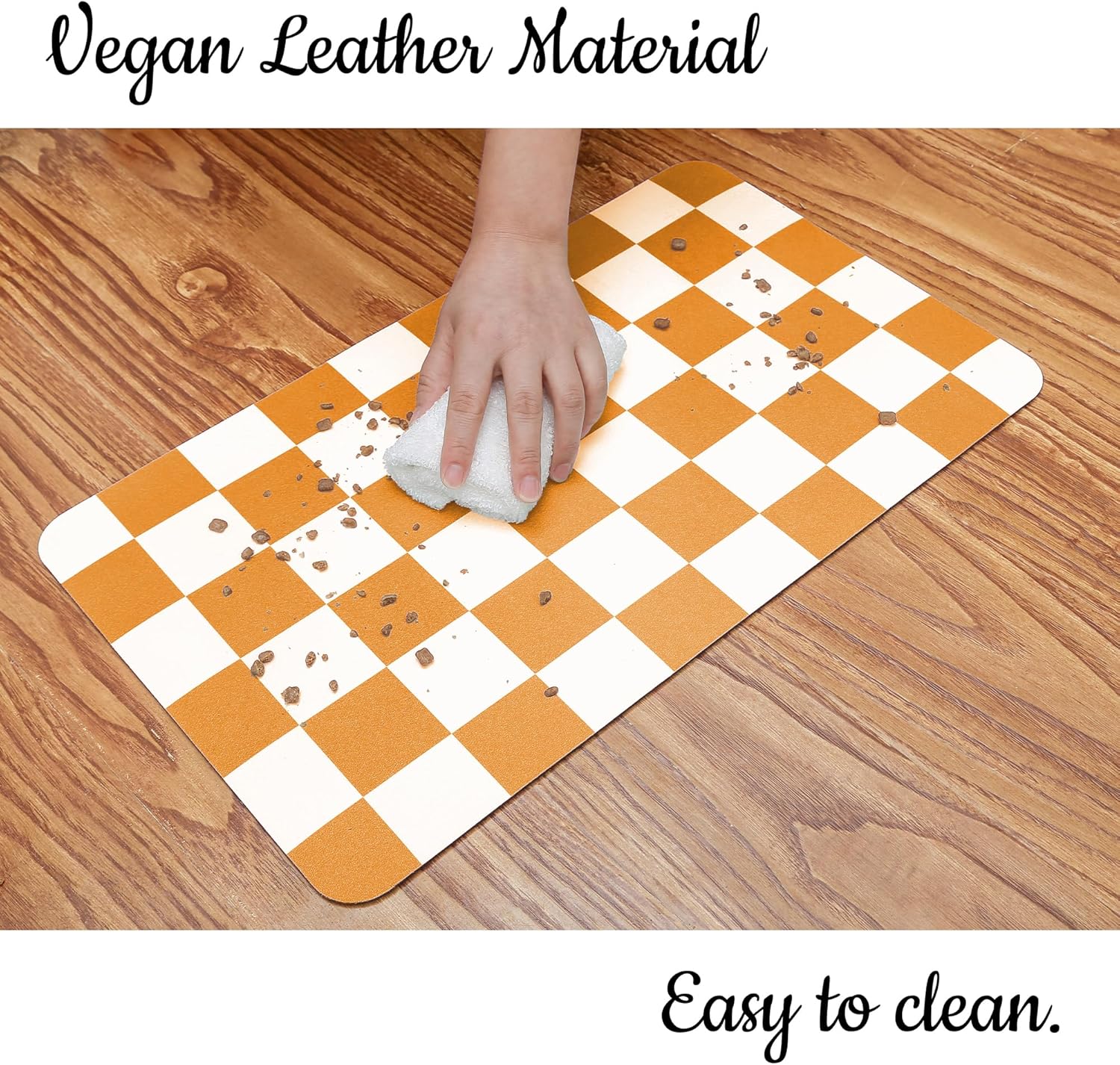 Ralxion Checkered Dog Feeding Mat, Absorbent Mats for Dog Food and Water Bowl, Dispenser, Aesthetic Purple Checkerboard Pet Placemat for Dogs, Cats, Puppy Accessories (Orange, 16 x 24)