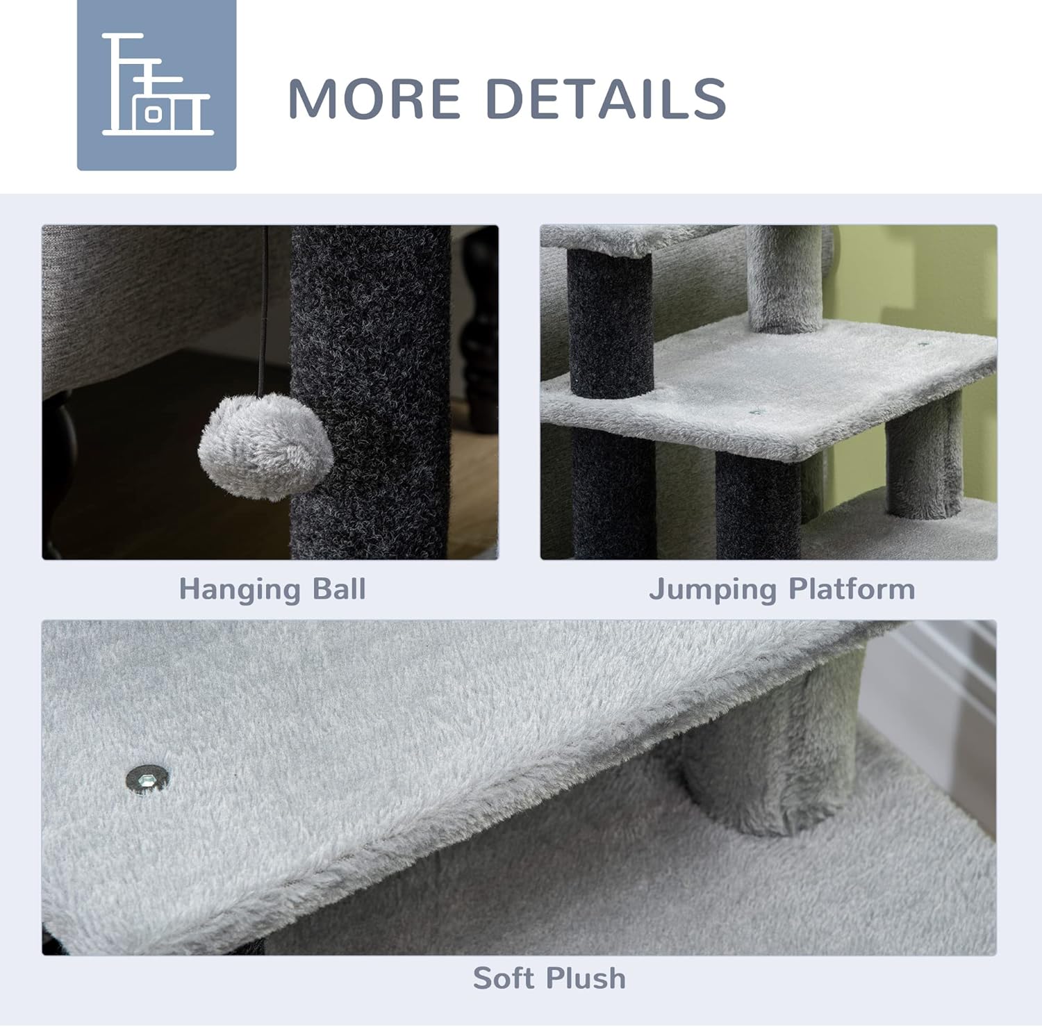 PawHut Pet Stairs, Adjustable Height 3/4 Step Cat Steps with Scratching Post, Condo, Toy Ball for High Bed, Sofa, Couch, Indoor Small Cats, Kittens, Gray