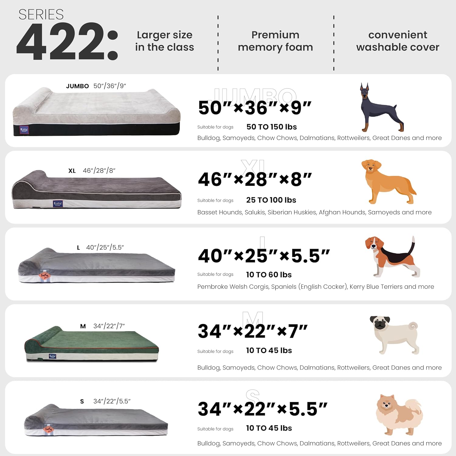 Laifug Orthopedic Memory Foam Dog Bed with Pillow and Durable Water Proof Liner & Removable Washable Cover & Smart Design Medium (34"x22"x5.5"), Grey