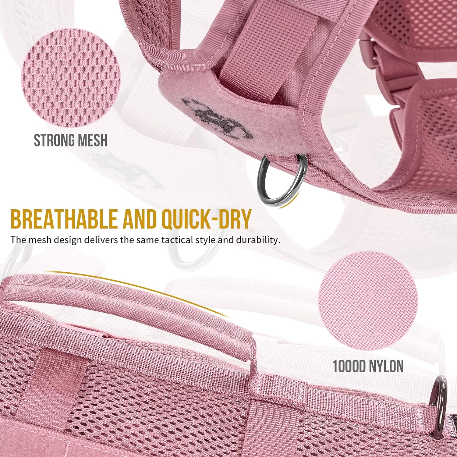 OneTigris Tactical Dog Harness for Small Dogs, No Pull Small Dog Vest Harness with Handles Breathable Military Dogs Molle Vests, Walking Hiking Training (Pink, X-Large)