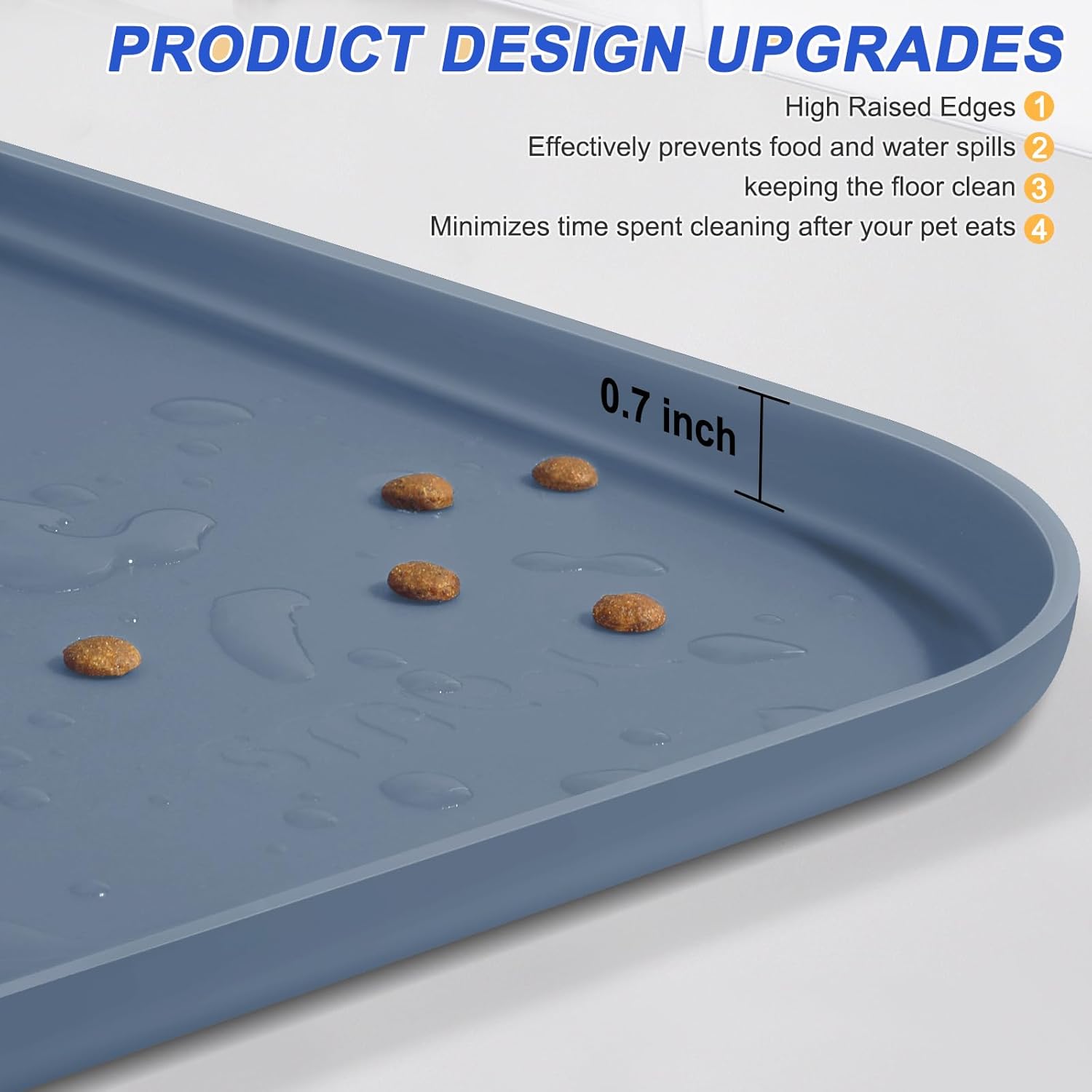 Silicone Pet Feeding Mat with Raised Edge for Food and Water, Dog Bowl Mats, Cat Bowls Placemat with High Lip for Floor Waterproof, Rubber Tray for Cats and Dogs 19 x 12 x0.7 Slate Blue