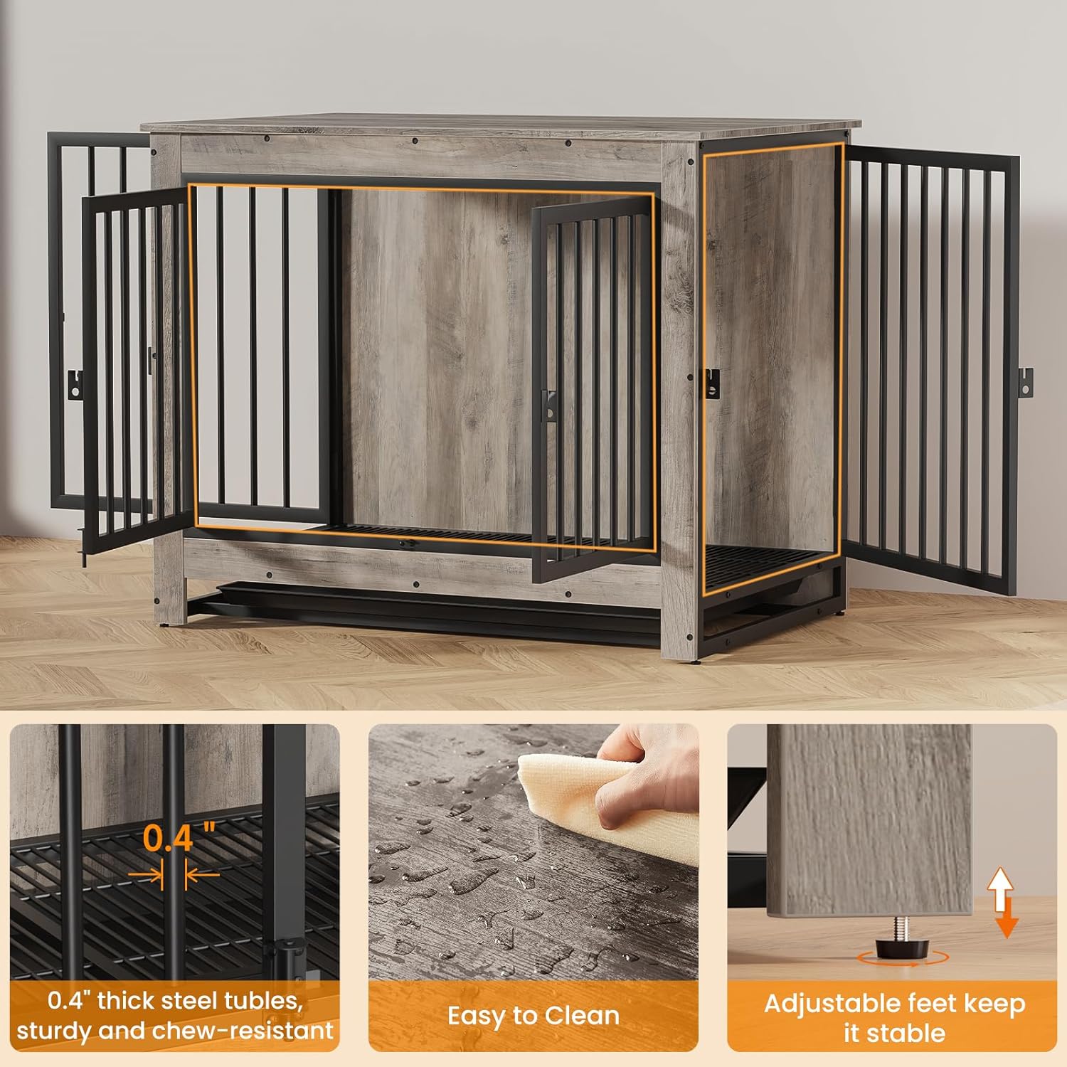 Dog Crate Furniture, Dog Crate End Table for Medium and Large Dogs,Wooden Cage Kennel Furniture Indoor, Modern Dog Crate with Multi-Purpose Removable Tray, Double-Doors Dog Furniture