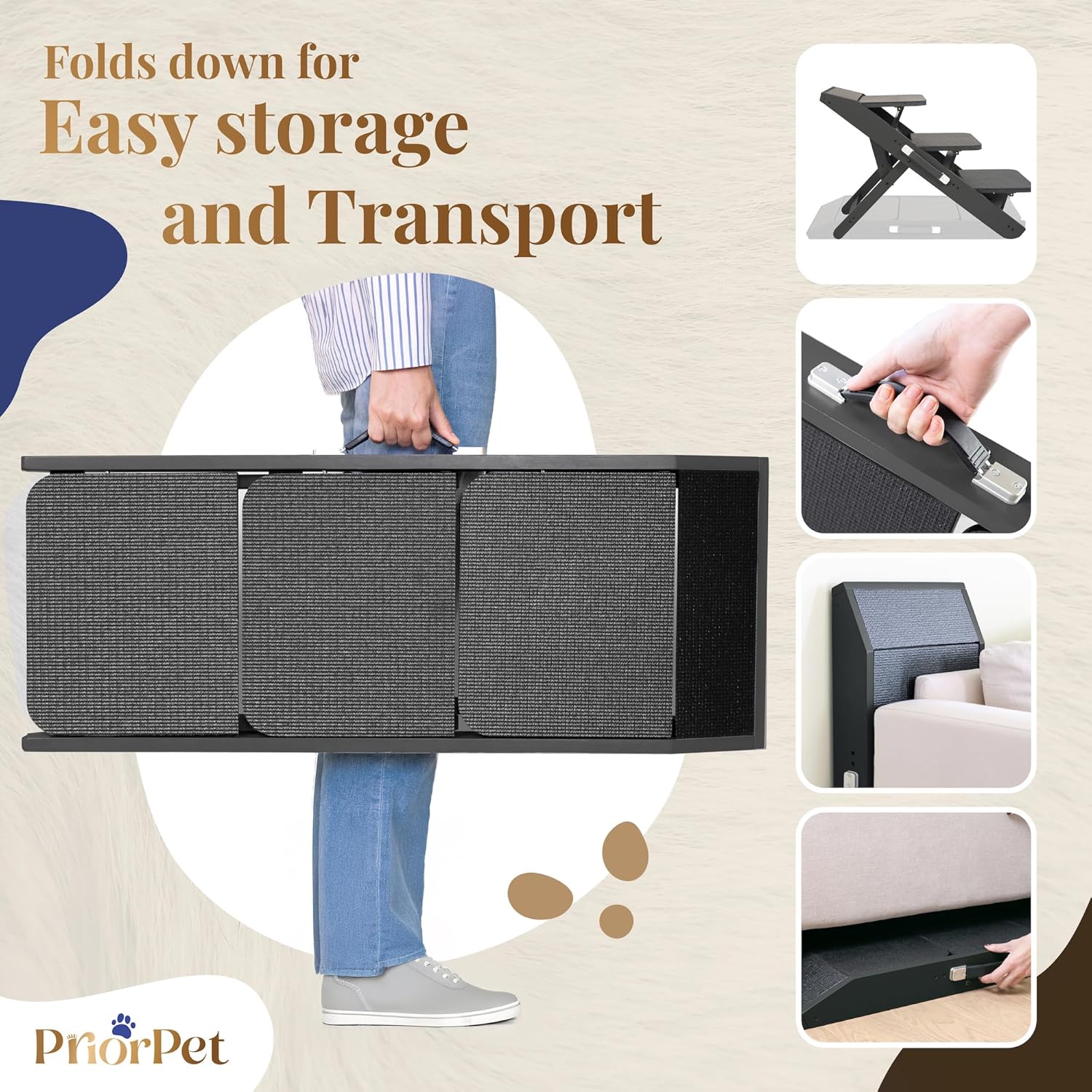 - 2-IN-1 CONVERTIBLE DESIGN: RAMP & STAIRS IN ONE: Easily switch between dog steps for bed and dog ramp for couch to suit your pet's needs, making it the perfect stairs for dogs to get on bed, ensuring safe access to elevated areas.