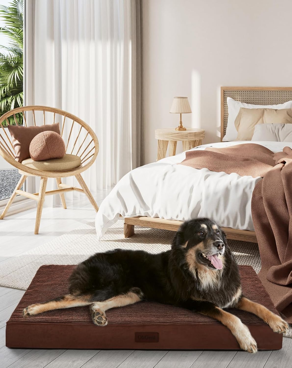 OhGeni Orthopedic Waterproof & Machine Washable Dog Bed for Large Pets, Suitable for Crates, Cat Mat with 25D Egg Crate Foam, Non-Slip Bottom & Removable Cover, Invisible Zipper, 41 Inches(Brown)