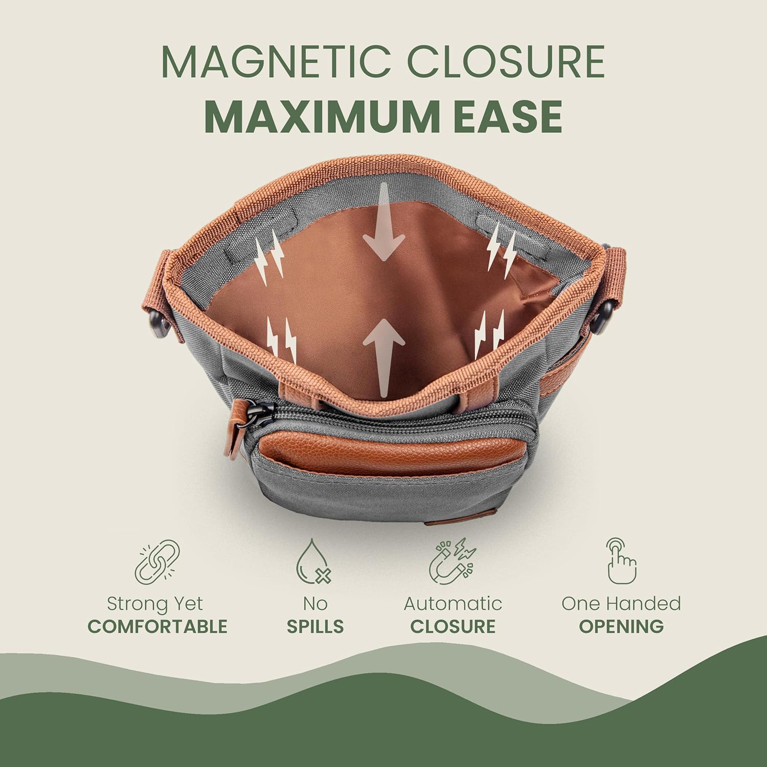 - 【EFFORTLESS ONE-HANDED ACCESS】 - The magnetic closure of this puppy treat pouch ensures fast access to treats, allowing you to reward your dog effortlessly during training sessions or walks without breaking the flow.