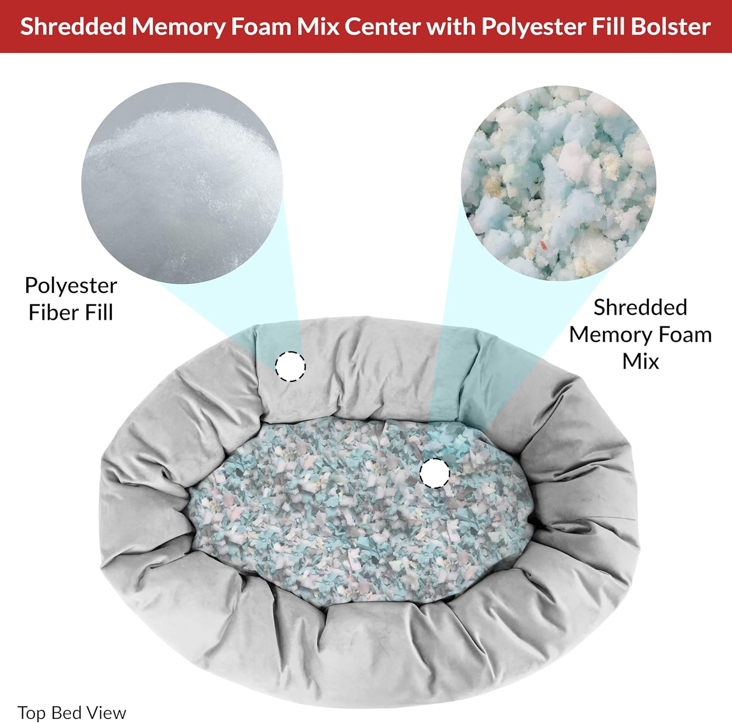 - [Ultimate Orthopedic Comfort] This orthopedic dog bed cradles your pet’s body to relieve joint pain and reduce pressure, perfect for dogs needing extra support as they age. A thick, supportive foam core creates a cozy sanctuary, providing luxurious, pain-free rest night after night. Pets sink into plush comfort that enhances their quality of life and sleeps with our shredded memory foam center cushion with polyester fiber fill bolster dog bed.