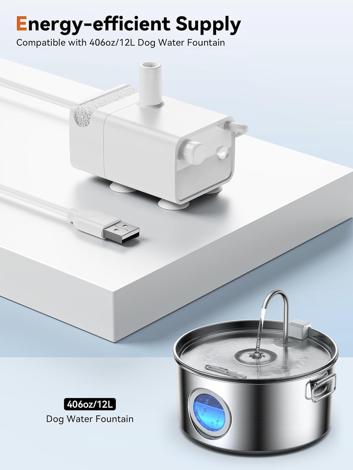 Dog Water Fountain for Large Dogs, 3.2Gal/406oz/12L Stainless Steel Pet Water Fountain, Quiet Dog Water Bowl Dispenser with Visible Window for Multi-pet Home (Pump for 3.2Gal Dog Fountain)