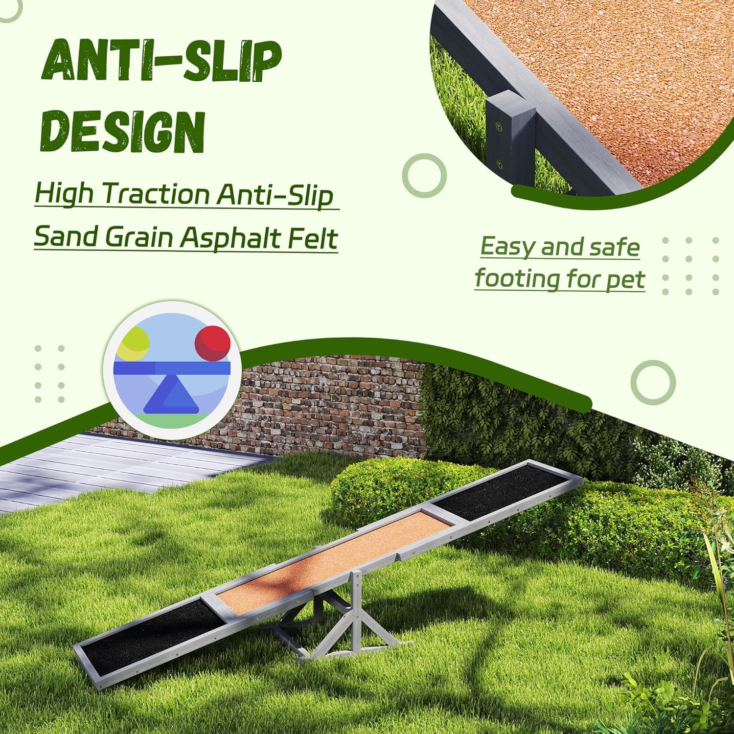 - Solid Construction: Give your furry friend a dog agility seesaw suitable for daily use. Our seesaw is made with fir wood for a structure that's outdoor-friendly and easy to maintain.