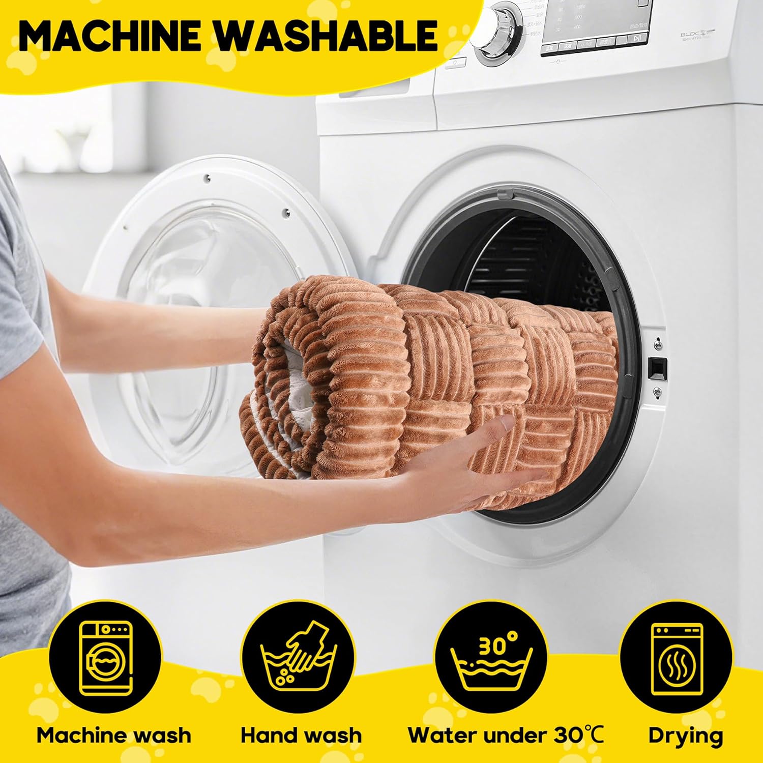 - 🧼【Durable and Easy to Clean】We understand that pet products need to withstand daily wear and tear. That's why this fuzzy dog bed is made of durable materials that can endure your pet's scratching, chewing, and all kinds of daily abrasion. Moreover, it's extremely easy to clean: just toss it in the washing machine with cold water (about 30°C) and gentle detergent, no bleach needed! For drying, keep the temp below 40°C—no ironing required. When the mat gets dirty, this hassle-free care routine lets it quickly return to a clean, tidy state, saving you time and effort.