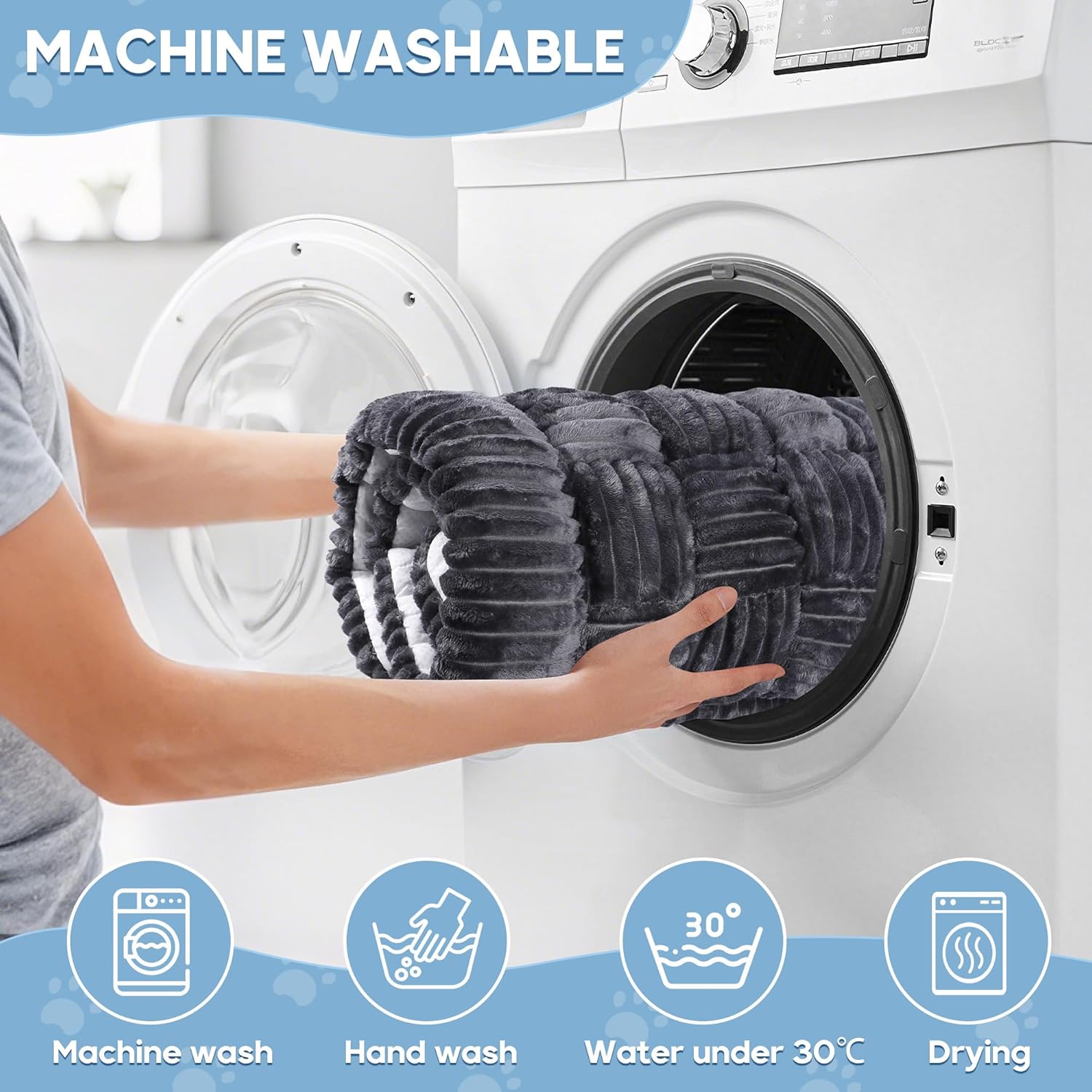 - 🧼【Durable and Easy to Clean】We understand that pet products need to withstand daily wear and tear. That's why this fuzzy dog bed is made of durable materials that can endure your pet's scratching, chewing, and all kinds of daily abrasion. Moreover, it's extremely easy to clean: just toss it in the washing machine with cold water (about 30°C) and gentle detergent, no bleach needed! For drying, keep the temp below 40°C—no ironing required. When the mat gets dirty, this hassle-free care routine lets it quickly return to a clean, tidy state, saving you time and effort.