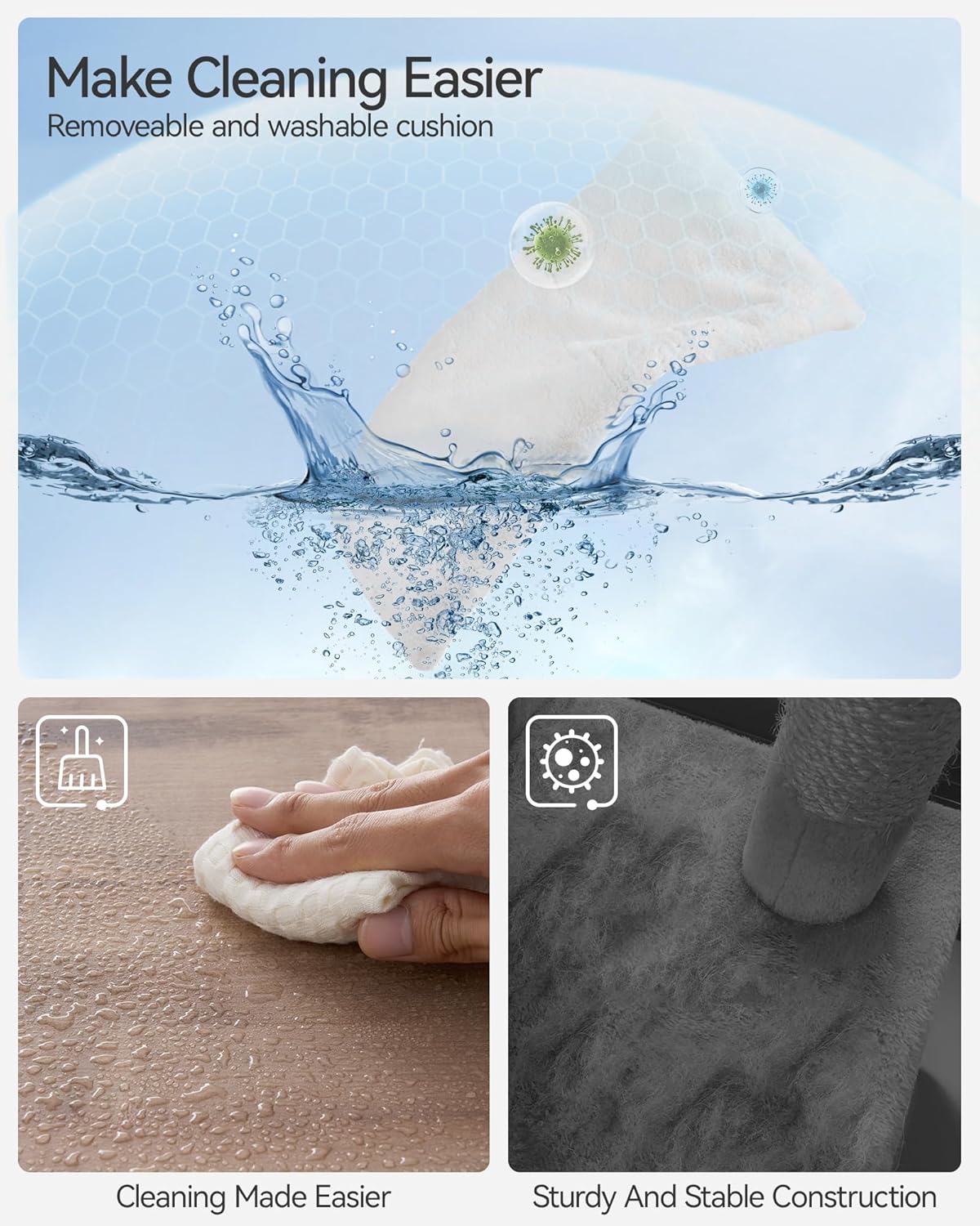 - Easy Maintenance: These cat condo are very easy to clean! During daily care, wipe the surface with a cloth, and use a comb or lint roller to brush the cushions. When thoroughly cleaning, the cushions can be removed for washing.