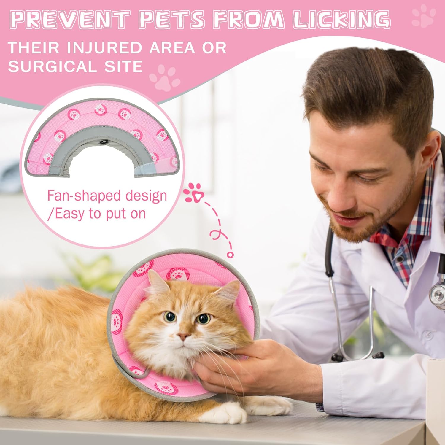- Durable and Comfortable Protection - This cat cone serves as a cozy protective shield around your cat's neck, effectively deterring them from biting or licking injured areas or surgical sites. It's designed for both short-term use to facilitate post-operative wound healing and suture retention, as well as long-term use to prevent anxious biting or licking behaviors.