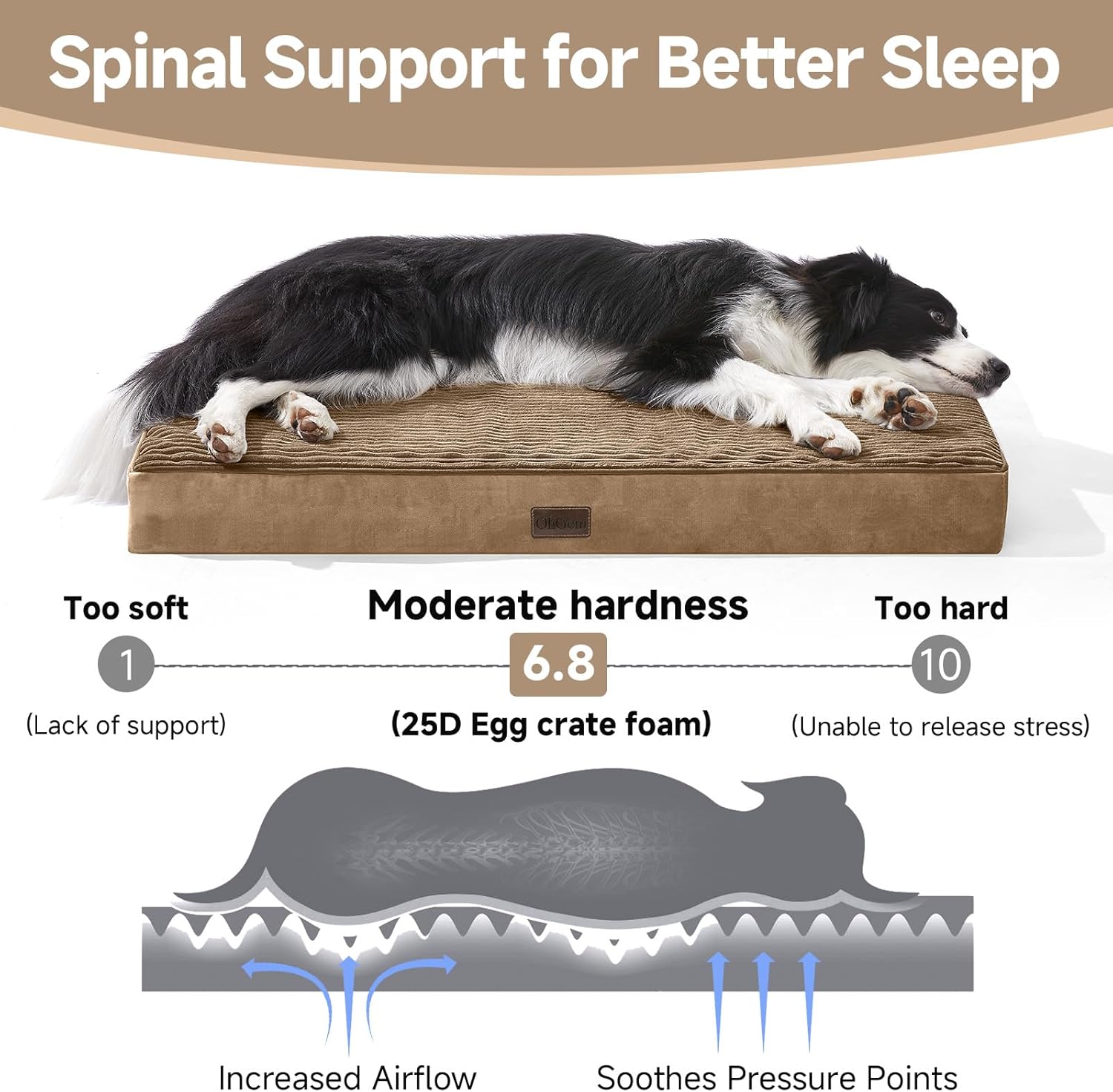 OhGeni Orthopedic Waterproof & Machine Washable Dog Bed for Medium Large Pets, Suitable for Crates, Cat Mat with 25D Egg Crate Foam, Non-Slip Bottom & Removable Cover, 35 Inches(Coffee)