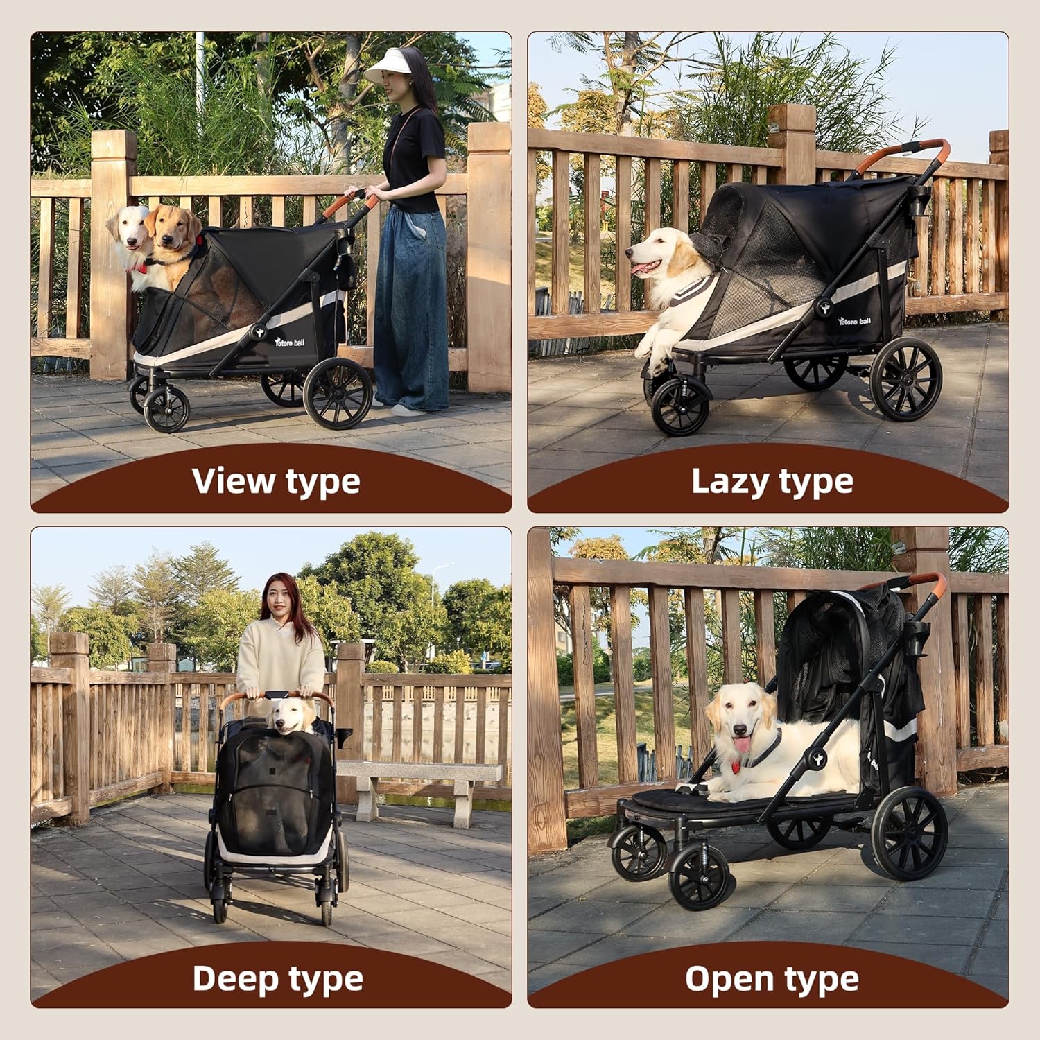 - 【Designed for Large Dogs】This pet stroller measures 27.5" x 30" x 18.8" and is ideal for medium to large-sized pets (up to 28"). It supports pets weighing up to 100 lbs. The dog stroller features spacious, breathable mesh windows on all sides, ensuring excellent ventilation and a clear view so your pet can enjoy fresh air while on the go. The removable, washable cushion (1.5" thick) provides comfort and is easy to clean, keeping the stroller fresh and inviting for your pet.