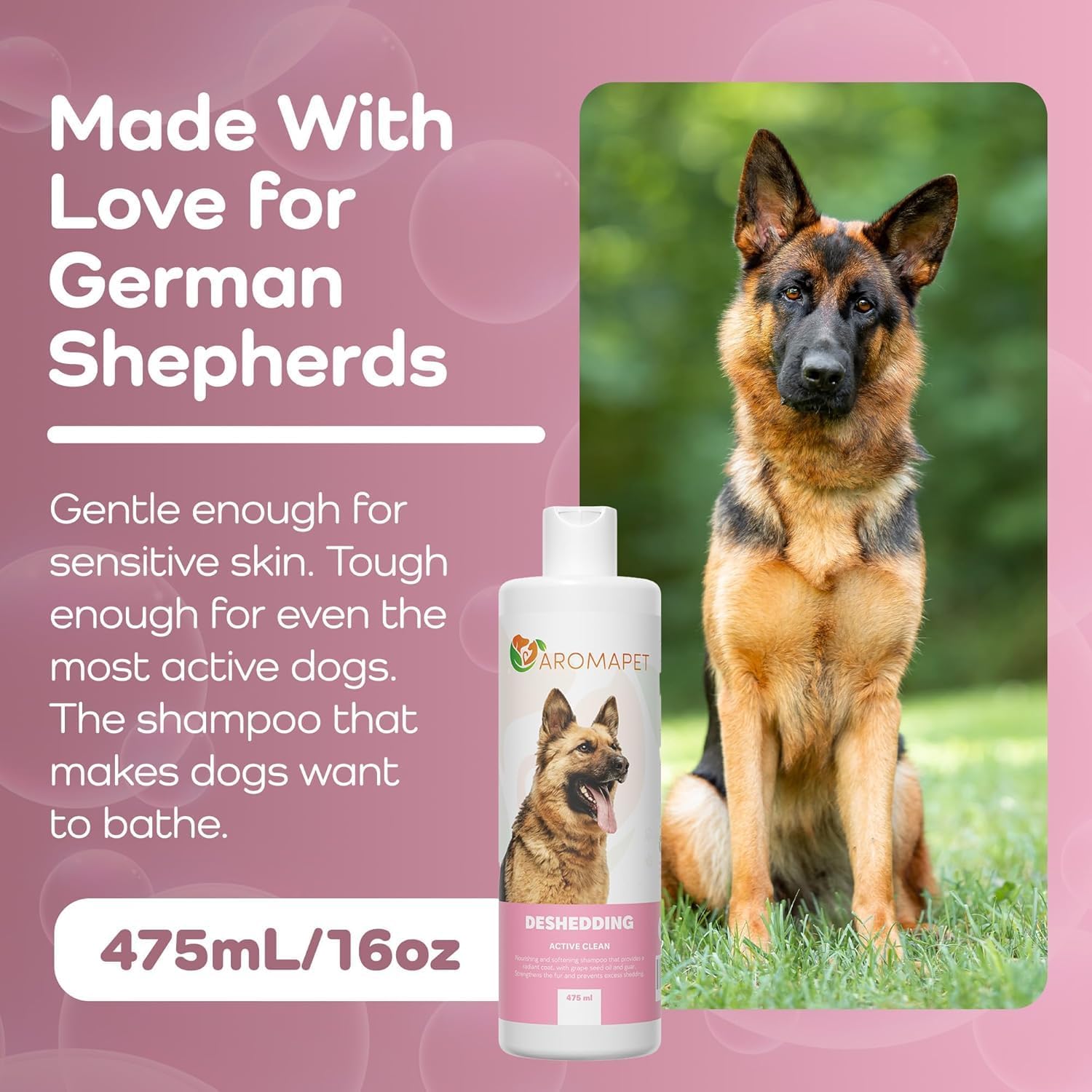 Deshedding Active Clean Dog Shampoo - Deodorizing Dogs Shampoo with Aloe, Argan Oil, Chamomile - Great for German Shepherds & Double Coats - Gentle, Hypoallergenic Dog Shampoo - 475mL