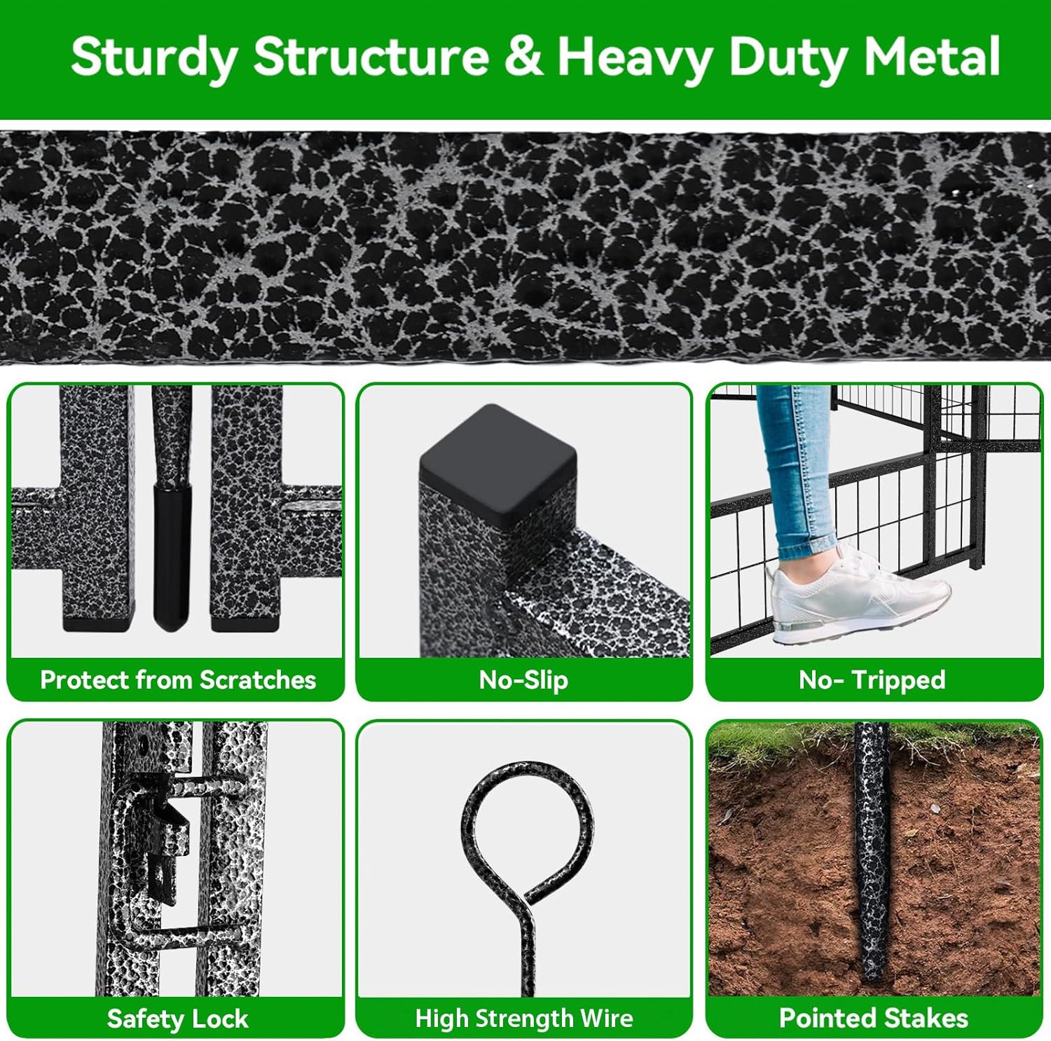 - 【Sturdy Structure & Stable Ground Stakes】Kfvigoho metal stakes are designed round top, which can be pounded into the ground for greater stability, this dog fence with sturdy structure, so dogs can't knock it down and keep them confined in a safe area, the pet pen works great for small, medium and large dogs and rabbits, ducks, turtles etc