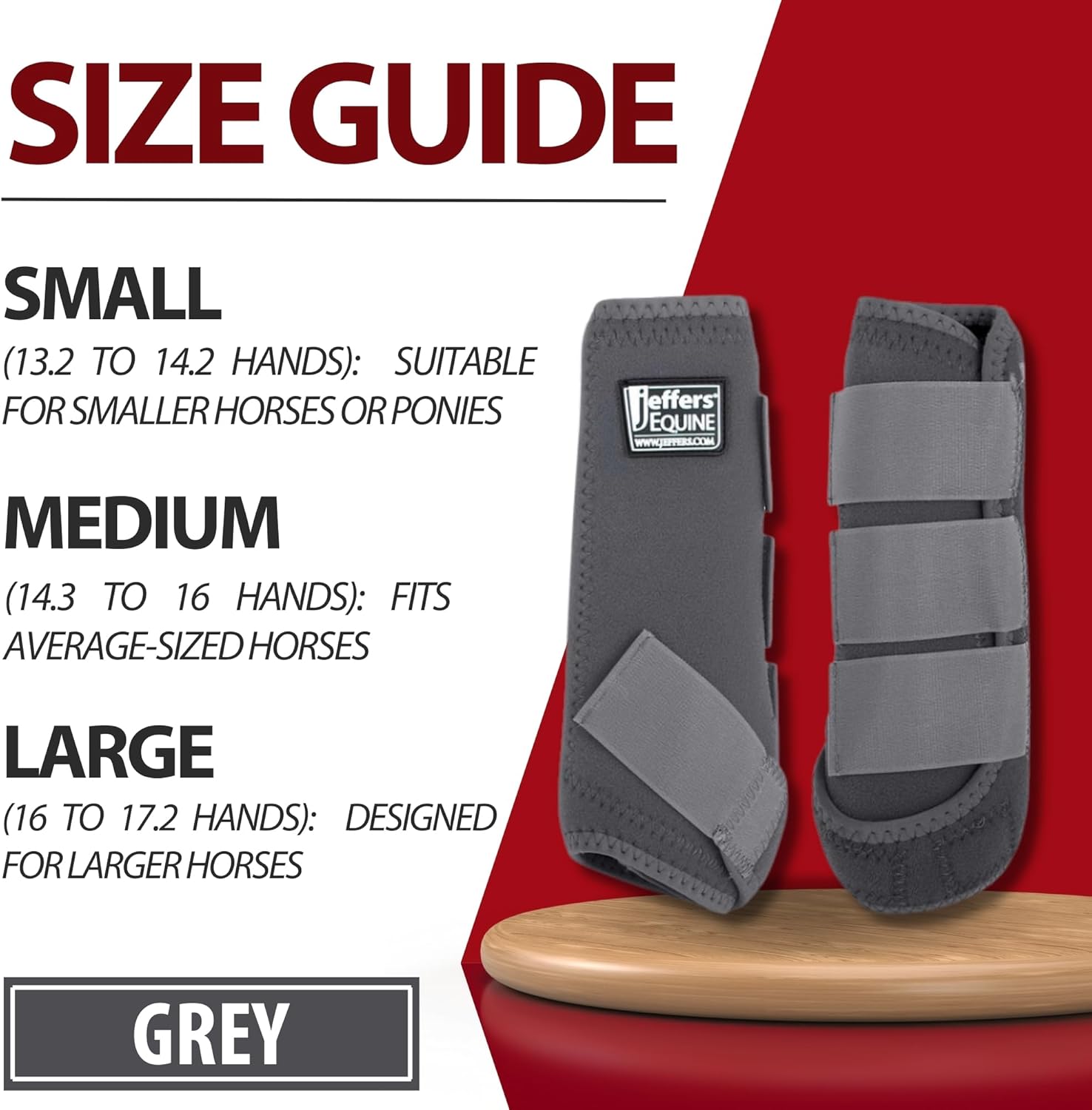 Jeffers Equine Protective Horse Boots 1 Pair Grey - Safe Neoprene Leg Guards & Comfortable Fit, Durable Strap Closures, Front & Hind Support, Equestrian Accessories for Travel & Riding - Small