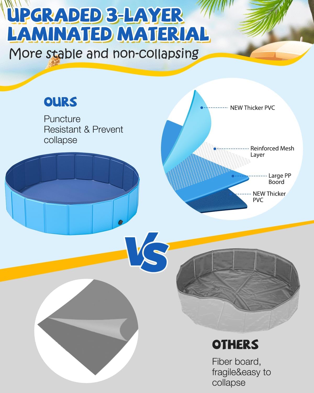 - PORTABLE & CONVENIENT β The dog bath pool is portable and convenient for people to carry and store at any time, which allows your lovely pets to enjoy in the water; There is no need to inflate