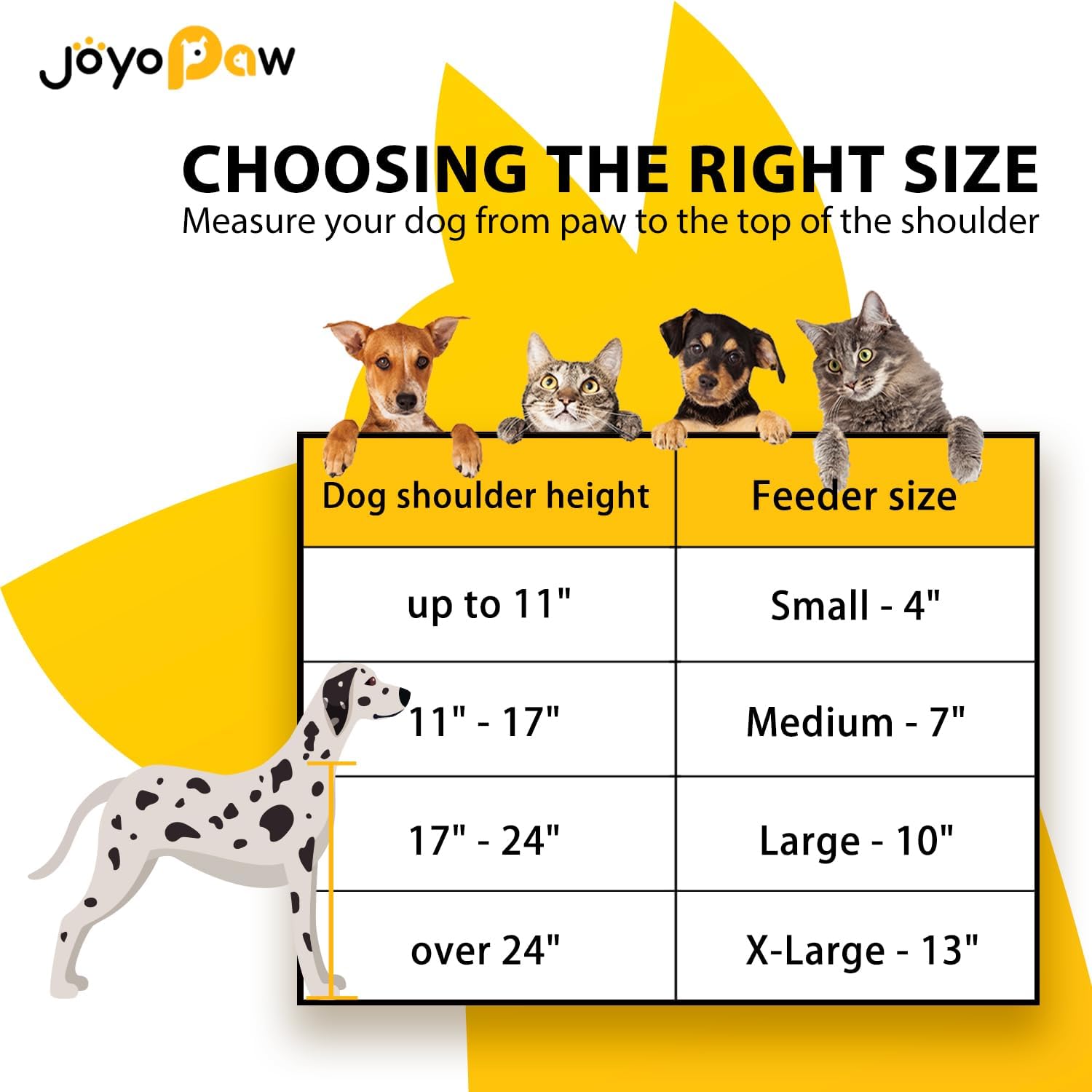 - IMPROVE HEALTH STATUS? JoyoPaw bamboo dog food stand provide ease of access to food and water which help to reduce bloating and neck strain in dogs. Encourage effective digestion and avoid joint pressure to protect your adorable friend.