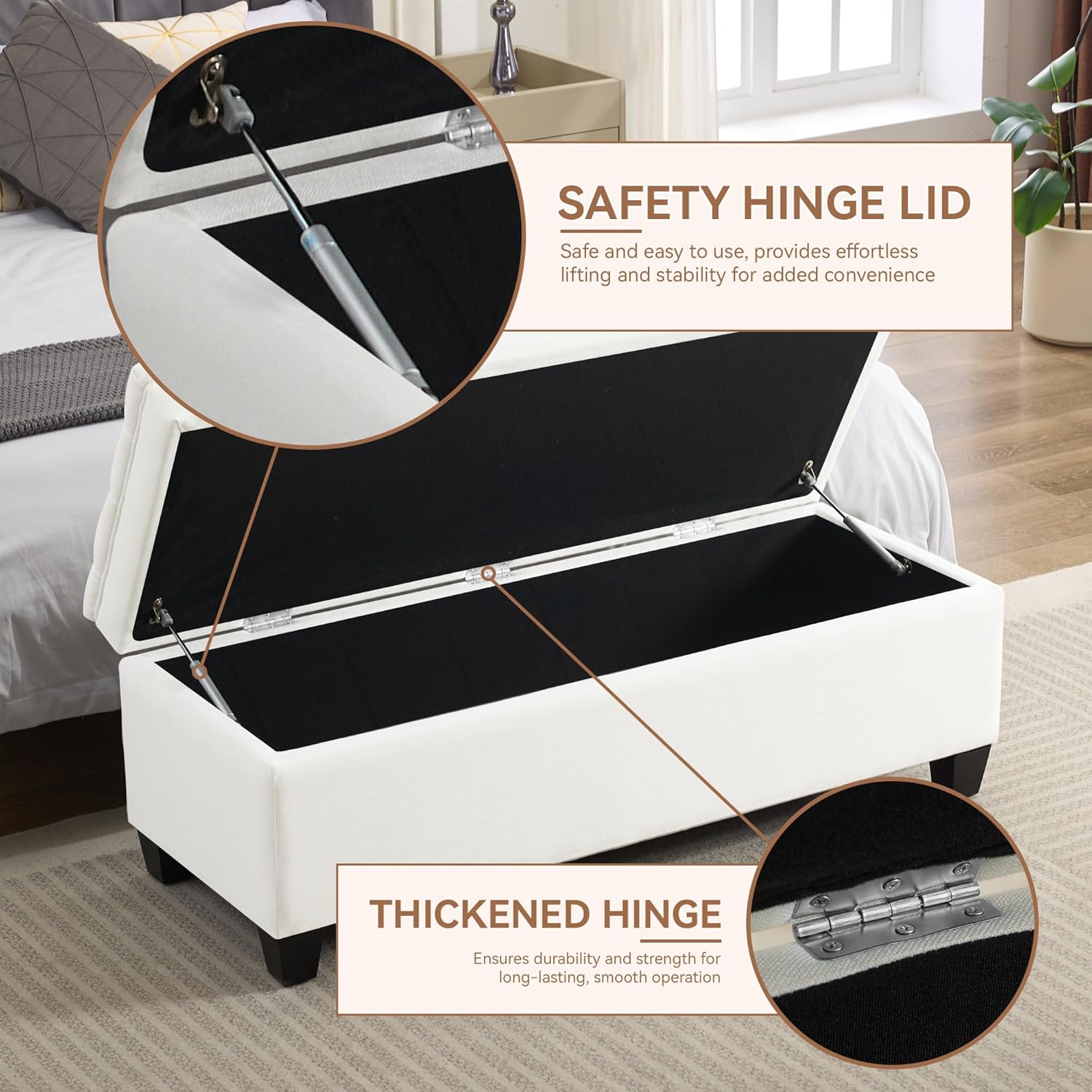 • Enhanced Safety: The use of thickened and upgraded gas lift device makes it easier to open and close the bedroom storage bench with less effort, while avoiding the risk of pinching the hand, providing you with a safe and convenient use experience. Besides, all edges of the ottoman with storage are carefully treated, no sharp corners, to protect the safety of your family