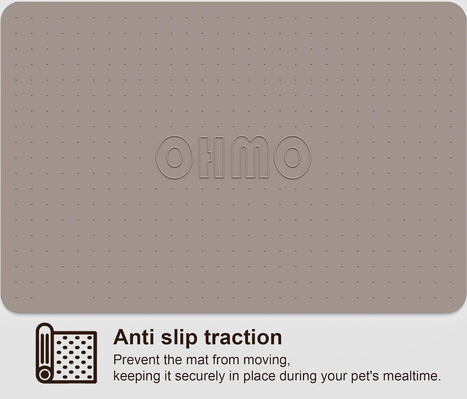 OHMO Dog Food Mat, Silicone Waterproof Cat Food Mat, Non-Skid Spill Proof Pet Feeding Mat for Food and Water, Easy to Clean Dog Placemat(Beige, 18.9" x 11.8")