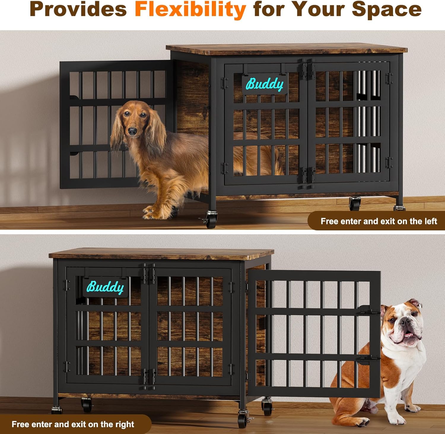 - Sturdy Build for Longevity: The furniture-style dog cage features thickened iron tubes and heavy-duty wooden panels. Their combination ensures great sturdiness and durability, easily withstanding your dog's daily activities and lasting long without wearing out easily.