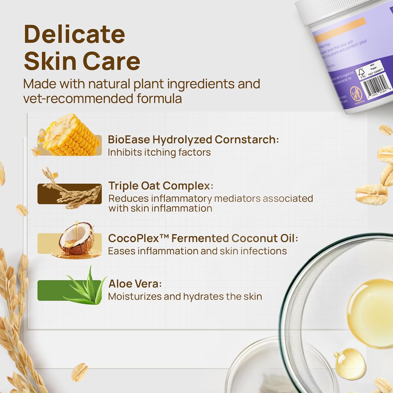 - More Powerful Formula for Root-Level Itch Relief: Itch relief for dogs contain a high concentration of BioEase hydrolyzed cornstarch, which penetrates deeply and offers natural anti-allergic properties for fast and long-lasting itch relief. It effectively inhibits the release of itch factors, addressing itching at its source. Due to its high concentration and absence of artificial fragrances, the wipes have a strong natural plant scent โ a true sign of the potency of natural ingredients