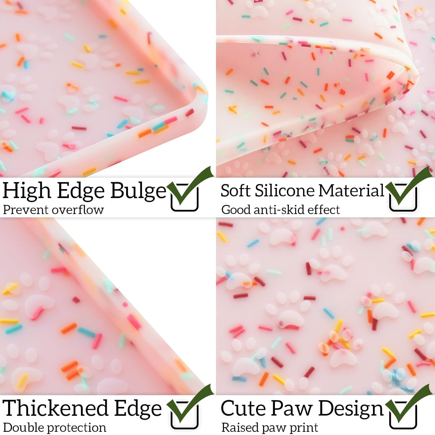 - Neat & Mess-Free: Raised edges with our dog placemat effectively prevent residue spills and splashes, letting mess keep away your floors. The thicker cat mat is perfect for keeping your home clean and tidy. Reduce cleaning time and pressure.