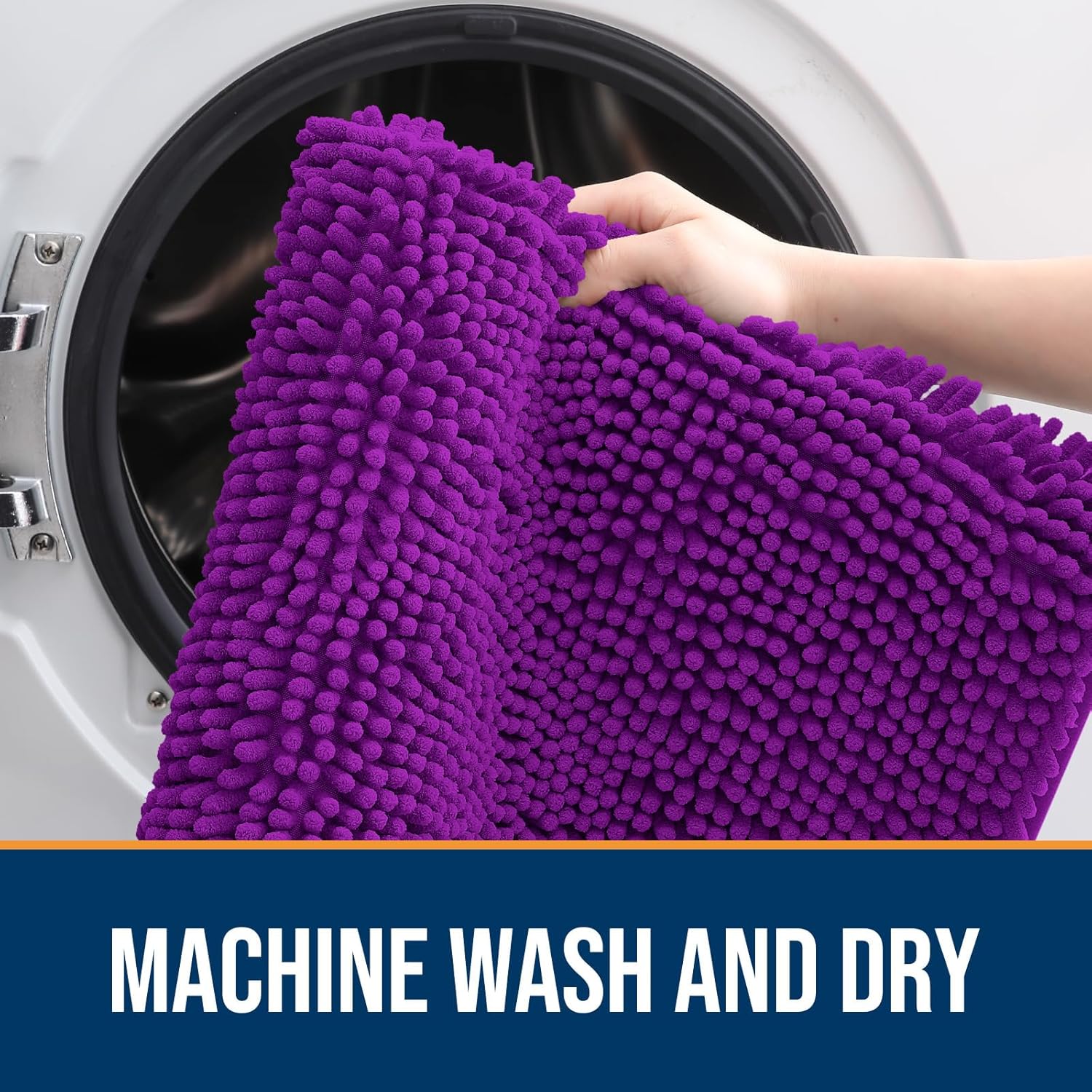 OLANLY Dog Door Mat for Muddy Paws 44x32, Absorbs Moisture and Dirt, Absorbent Non-Slip Washable Doormat, Quick Dry Chenille Mud Mat for Dogs, Entry Indoor Entryway Carpet for Inside Floor, Purple