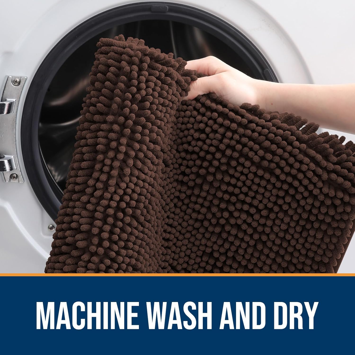 OLANLY Dog Door Mat for Muddy Paws 54x24, Absorbs Moisture and Dirt, Absorbent Non-Slip Washable Doormat, Quick Dry Chenille Mud Mat for Dogs, Entry Indoor Entryway Carpet for Inside Floor, Brown