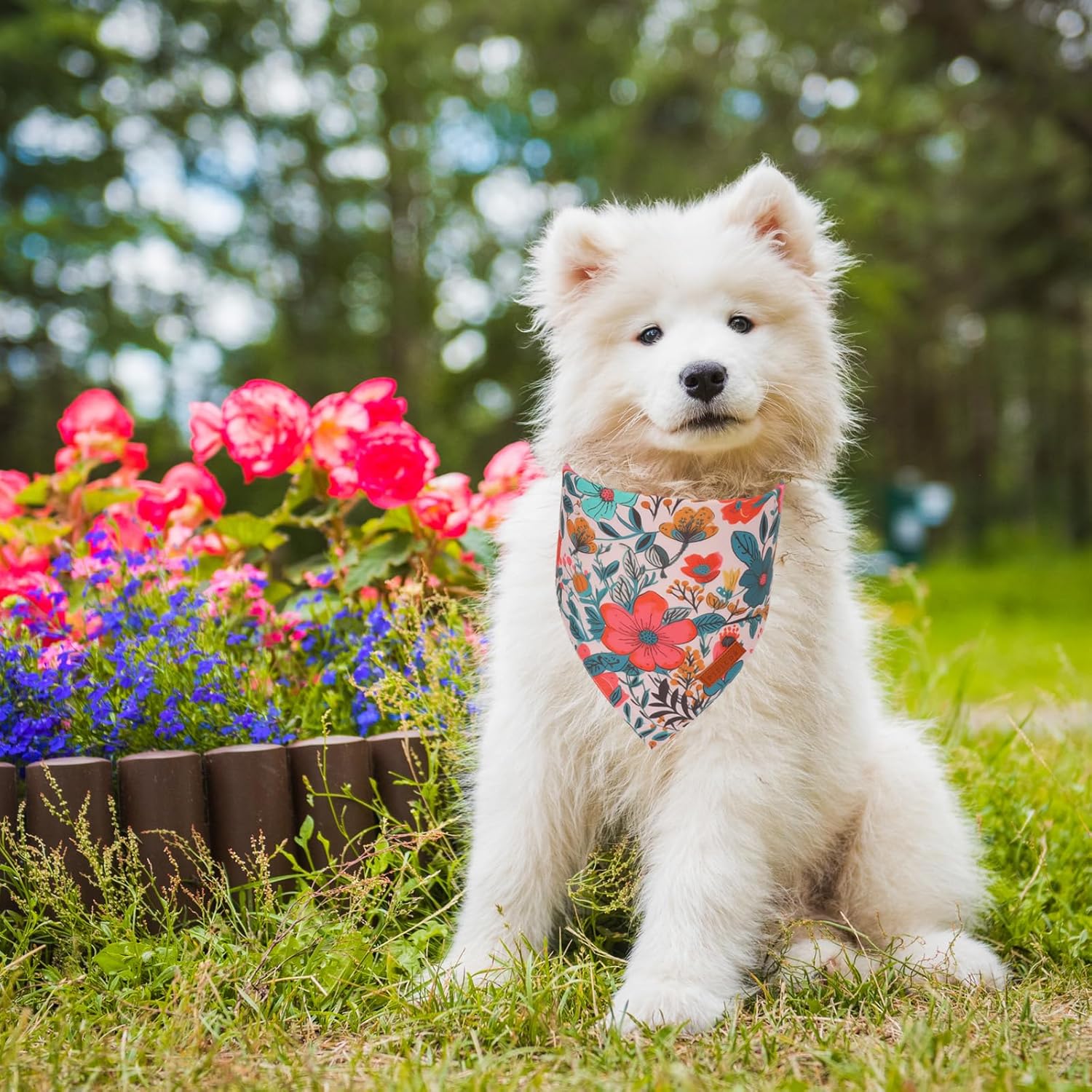 PTDECOR Flower Dog Bandana,2 Pcs Floral Reversible Dog Scarf, Multi Size, Triangle Pet Bandanas for Small Dogs (Flower, Small)