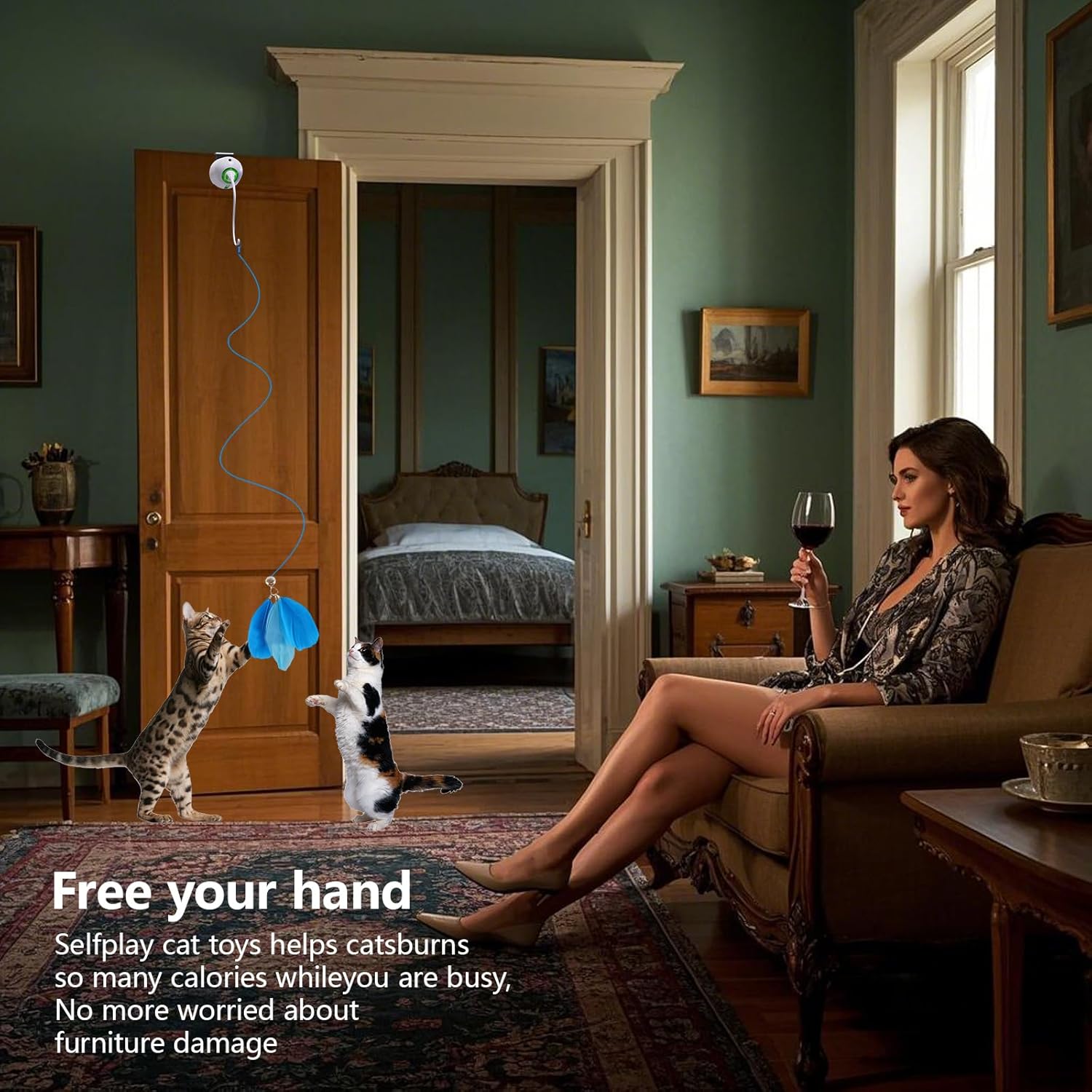 - Versatile and Intelligent:Hanging Door Electric Cat Toys Interactive Feel free to adapt to any cat's favorite rope toy, the owner can be operated remotely to adjust the gear, three speeds, suitable for any character cat, so that ordinary toys can also cause the cat full of vitality