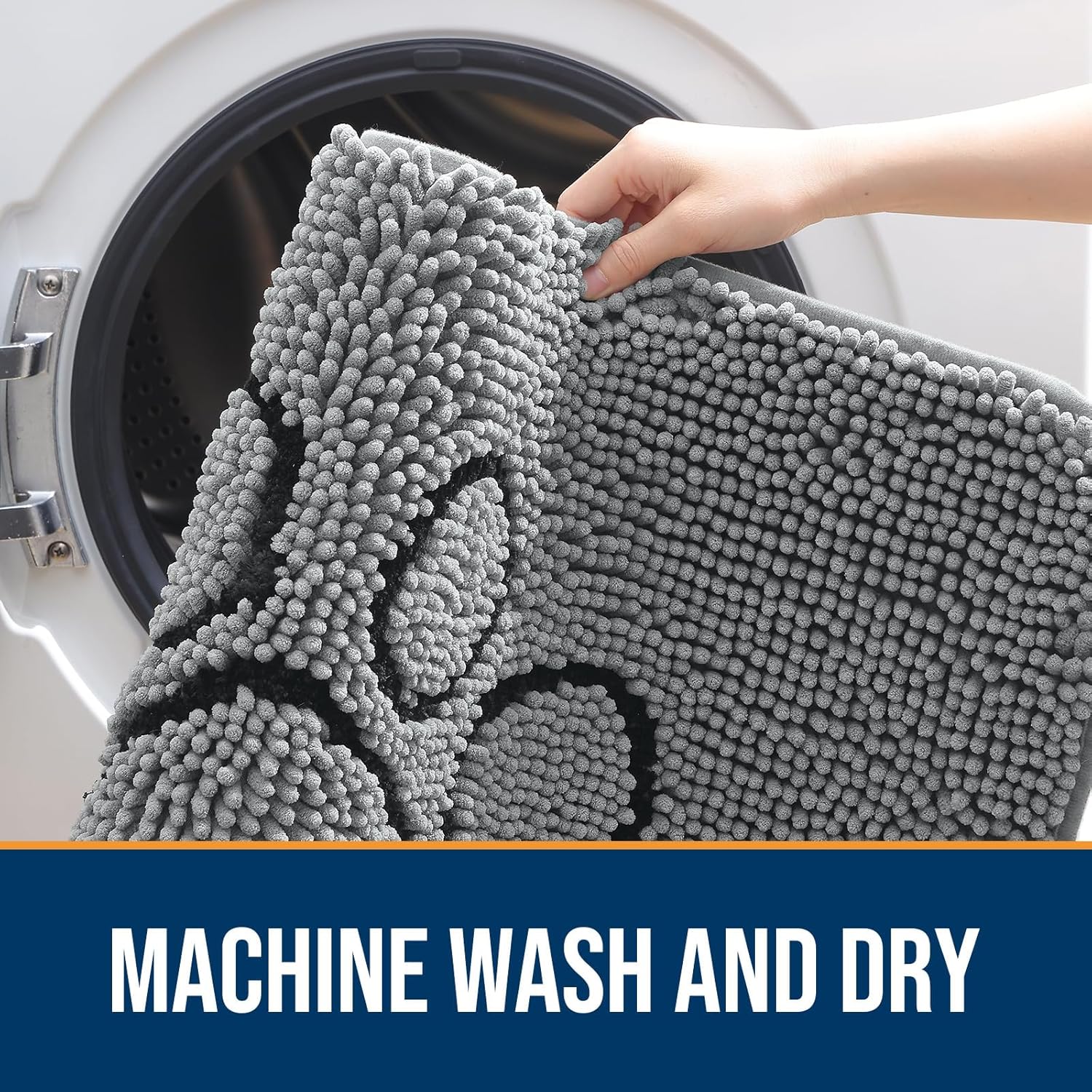 OLANLY Door Mat for Muddy Dog Paws 59x24, Ultra Absorbent Chenille Mud Doormat with Paw Print Design, Non-Slip Washable Doormat for Indoor Entryway, Quick-Dry Pet Bed Mats for Dirty Dogs, Grey