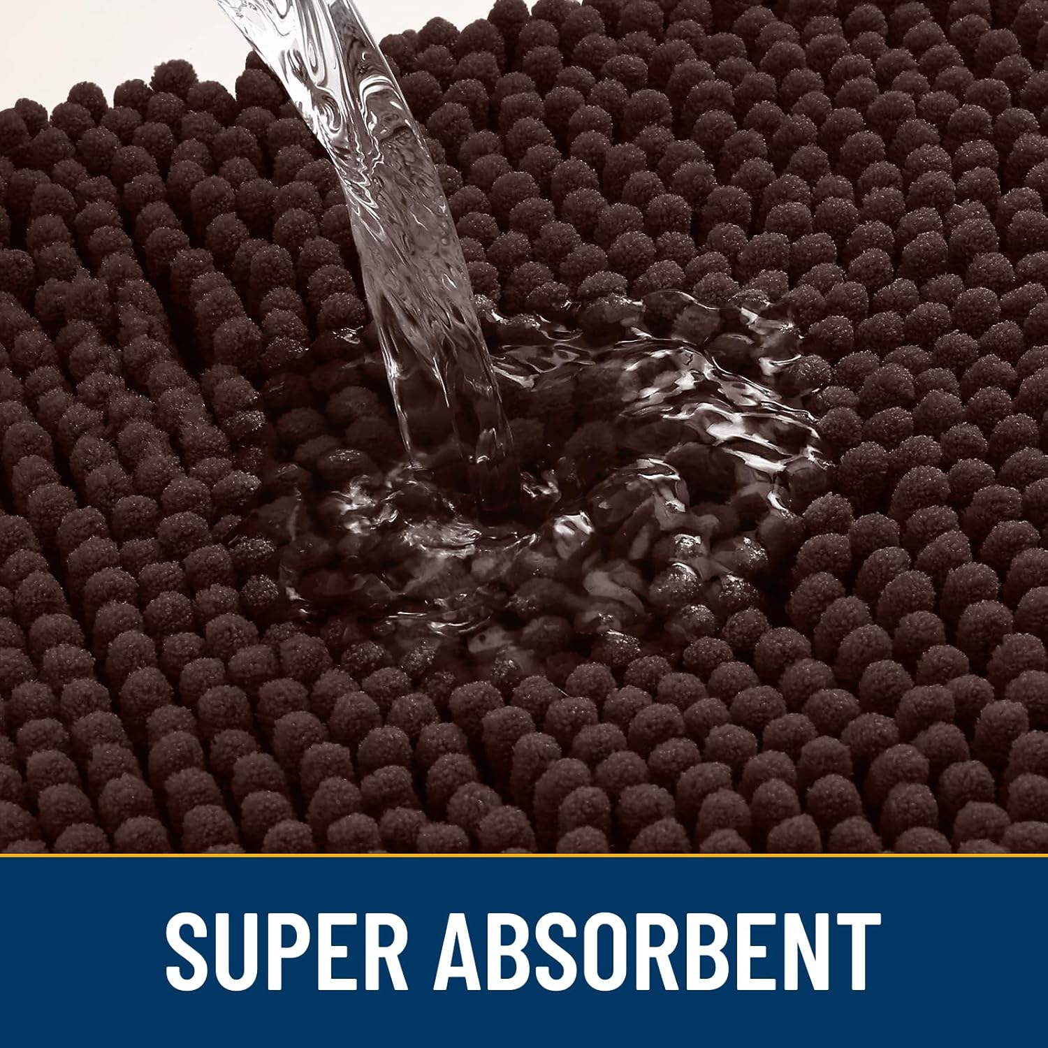Smiry Dog Door Mat for Muddy Paws 24x16, Absorbs Moisture and Dirt Doormat, Non-Slip Washable Quick Dry Chenille Front Door Mat Indoor Entrance, Entryway Carpet for Inside Floor, Brown