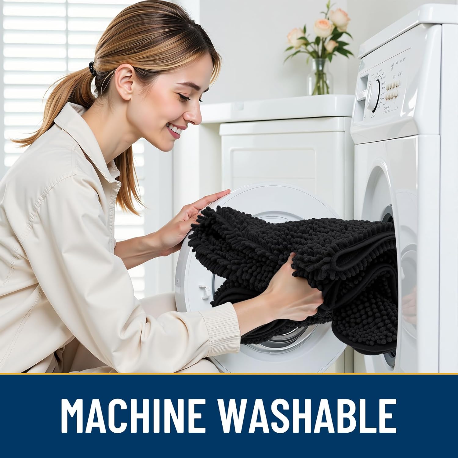Smiry Dog Door Mat for Muddy Paws 59x35, Absorbs Moisture and Dirt Doormat, Non-Slip Washable Quick Dry Chenille Front Door Mat Indoor Entrance, Entryway Carpet for Inside Floor, Black