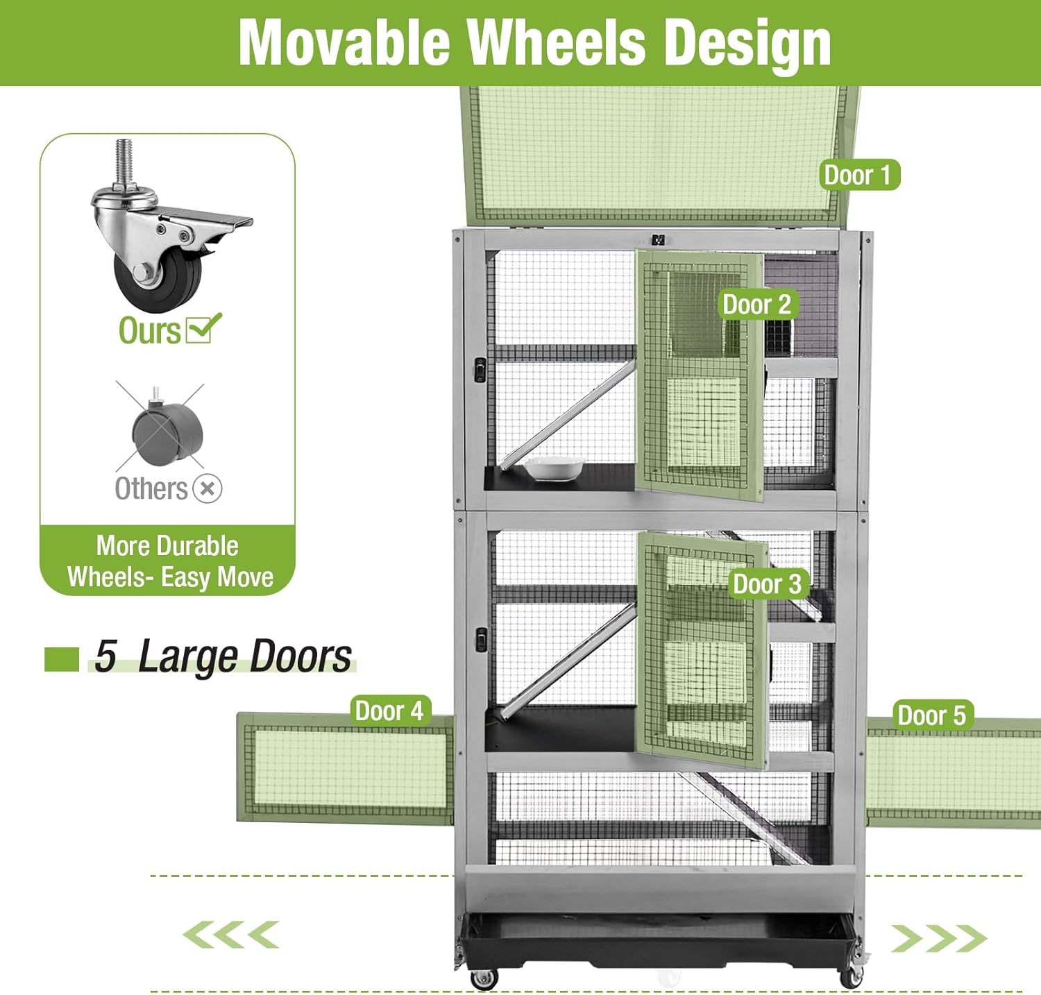 - Easy Access & Maintenance:featuring multiple large doors and a removable bottom tray, cleaning is a breeze, and accessing your ferret for playtime is effortless.