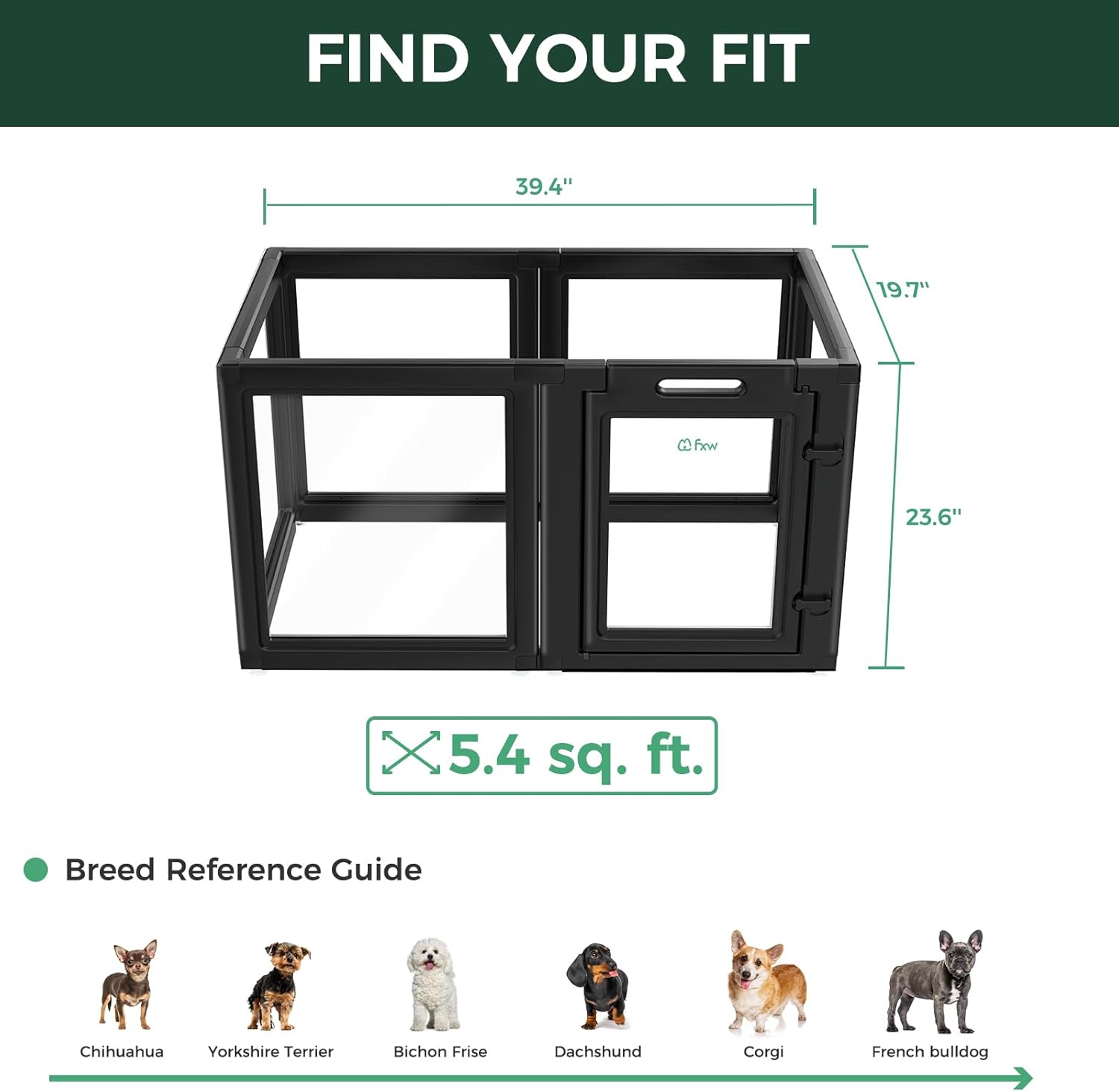 FXW AuraSpace Acrylic Indoor Unleashed Dog Playpen for Puppies and Small Dogs, 24 Inch, 6 Panels, Black