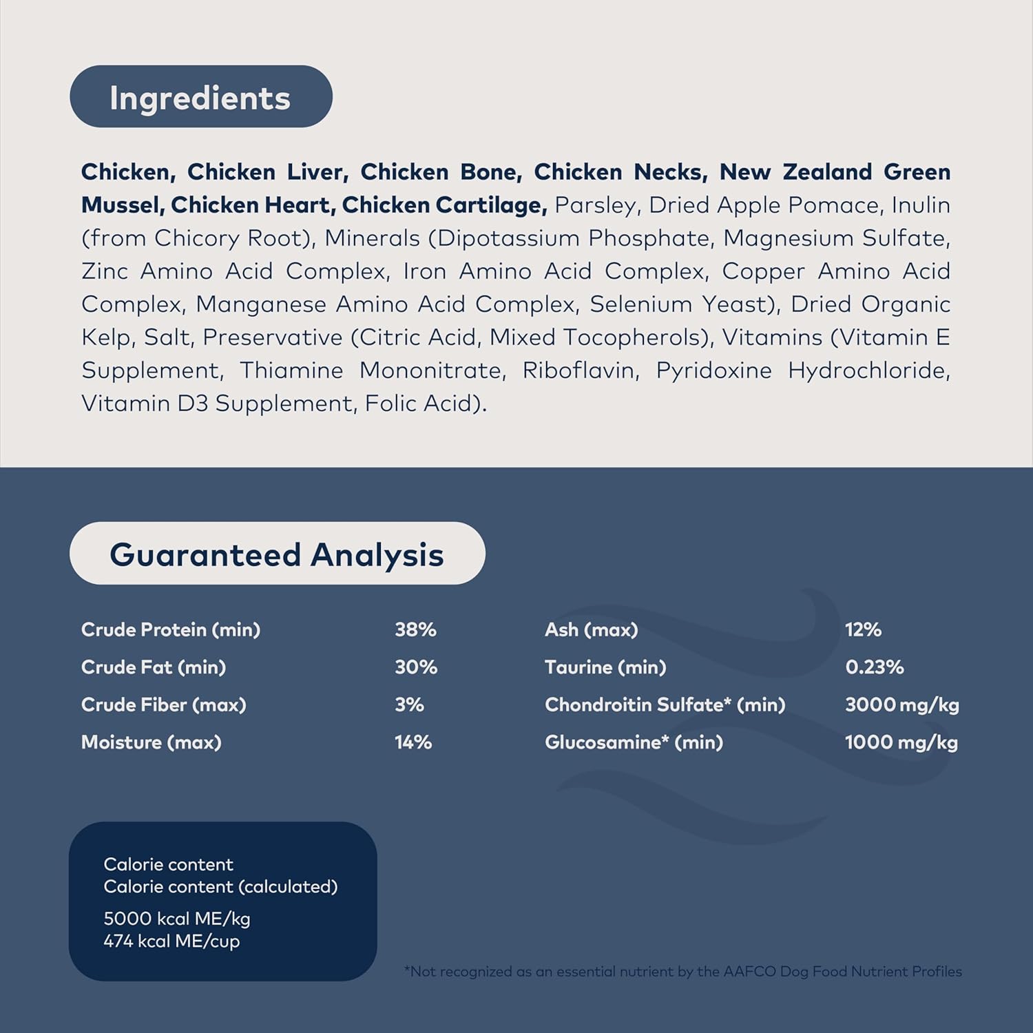 - HIGH PROTEIN, NUTRIENT DENSE: Featuring free-range Chicken, Organs, Bone, and New Zealand Green Mussels, this grain-free dog food delivers nutrition with a mouth-watering taste for all dogs. Gentle air dried processing retains the goodness of the raw ingredients. This food offers stimulating crunchy texture small enough for puppy food but soft enough for senior dog food.